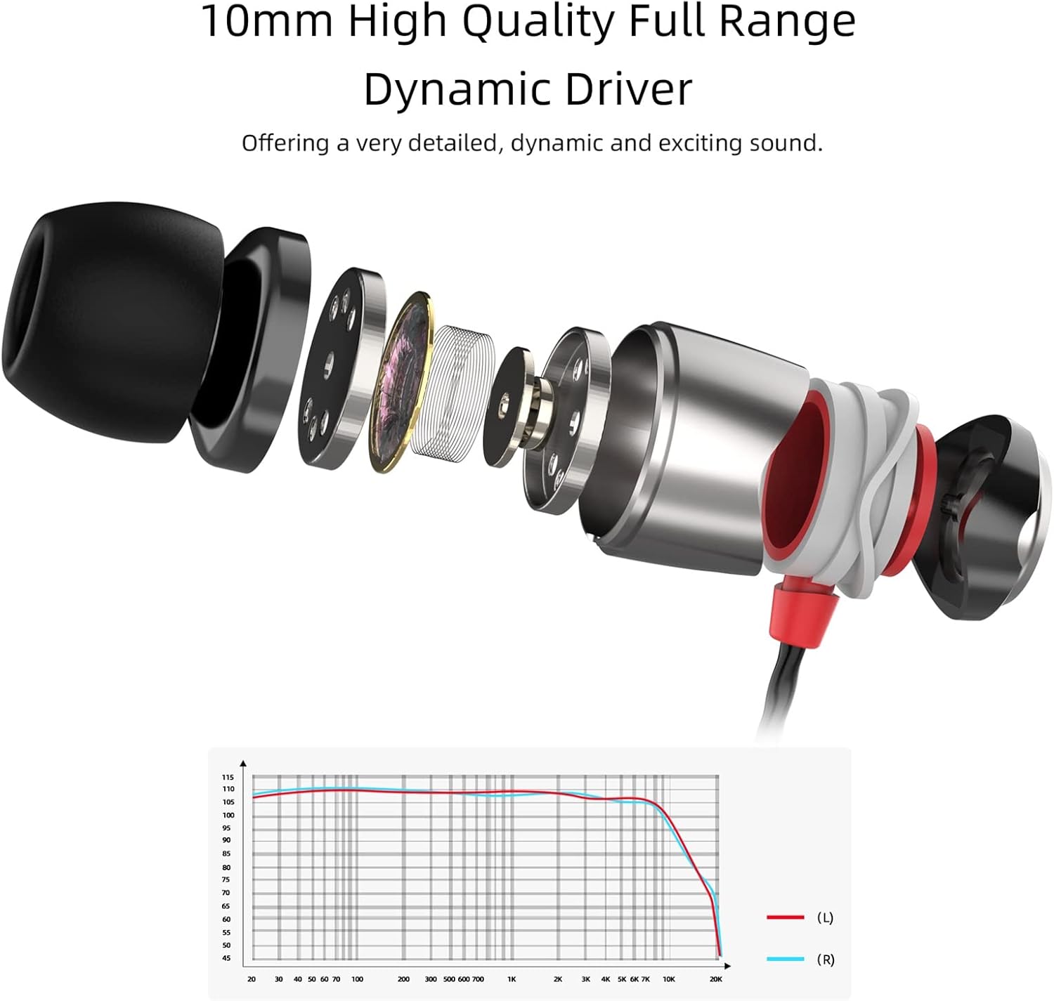 - Aluminium Construction For Durable:The full metal earphone housing construction makes the E10 extremely stable and durable for everyday use. The gold plated plug gets durability for friction and gets more stable music transmission.