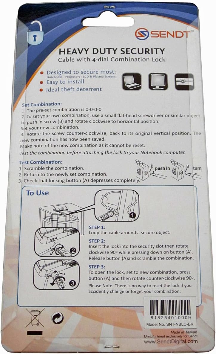 Sendt Black Notebook/Laptop Combination Lock Security Cable