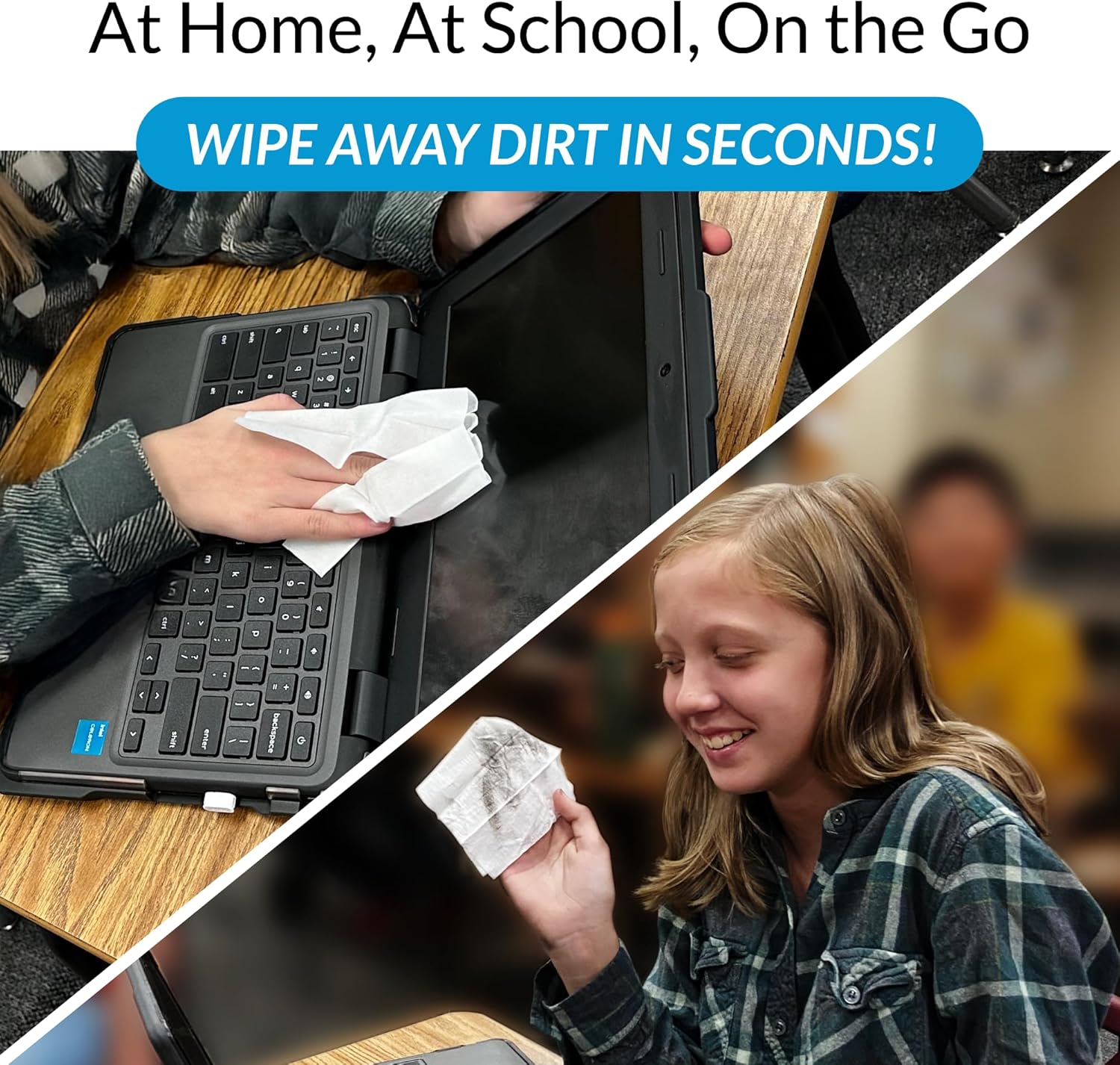 - ONE WIPE CLEANS YOUR ENTIRE DEVICE – Each cleaning wipe is perfectly sized to effortlessly remove dirt and oils from your laptop, computer monitor, car screen, or several smaller devices.