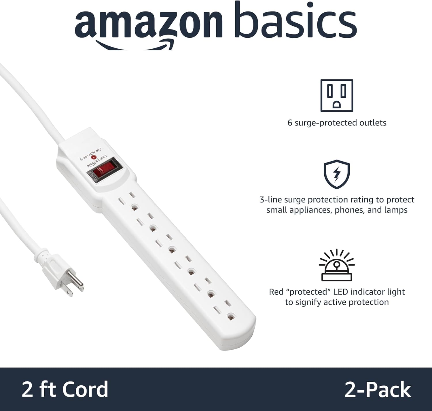 - IN THE BOX: Surge protector power strip in White (2-pack) for protecting small appliances, phones, lamps, and more from potentially damaging power surges