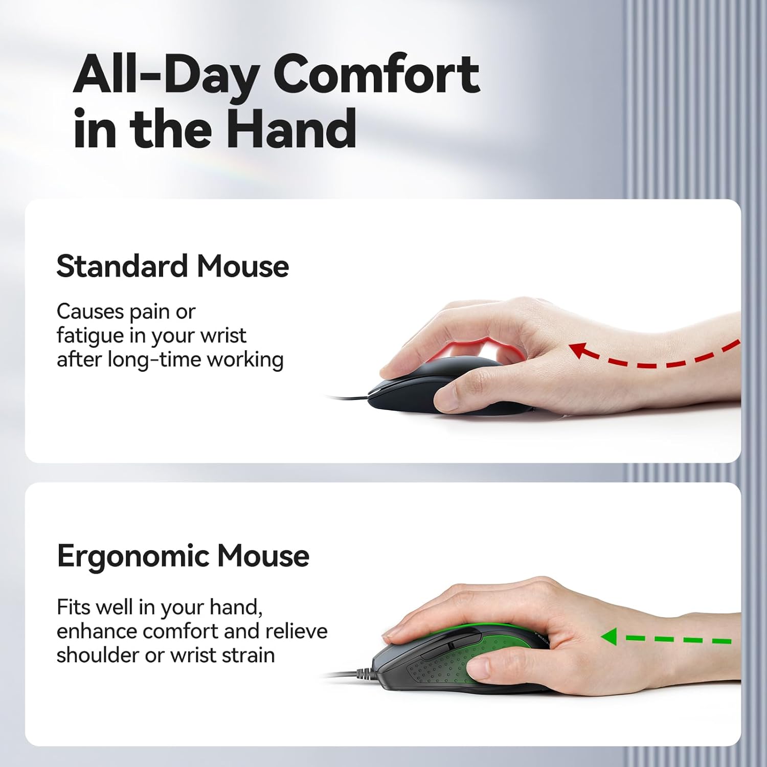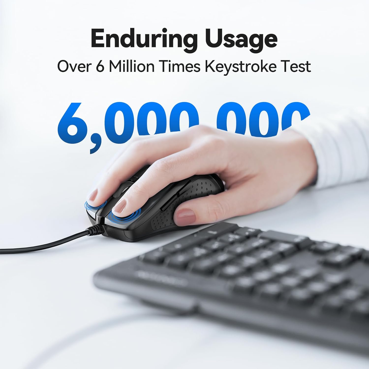 - 【High Precision and Durability】: TECKNET Tru-Wave technology wired computer mouse provides precise, intelligent cursor control and tracking on many surface types, even on smooth surfaces with glass. Tested for over 6 million keystrokes, the wired mouse ensures responsive clicks and a longer lifespan for daily use.
