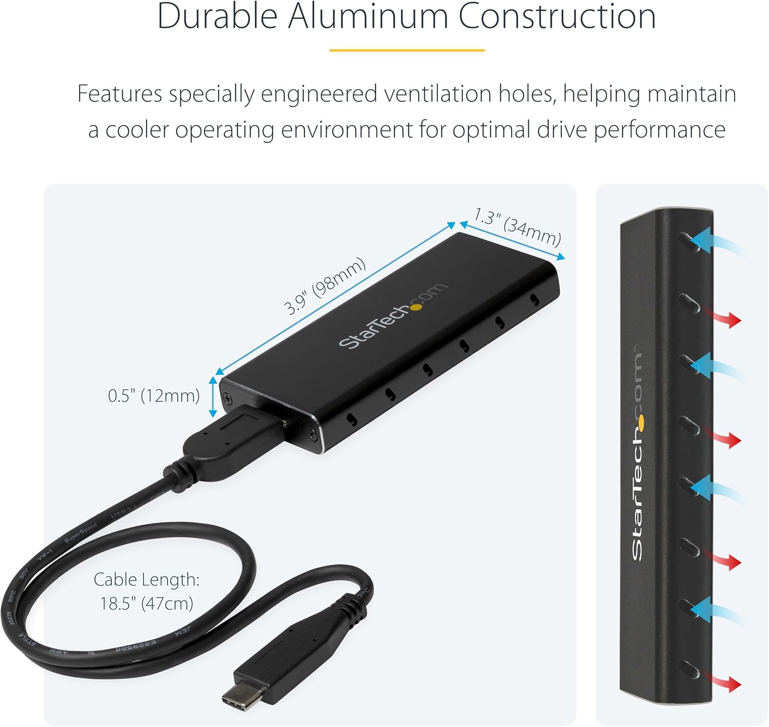StarTech.com M.2 SSD Enclosure for M.2 SATA SSDs - USB 3.1 (10Gbps) with USB-C Cable - External Enclosure for USB-C Host - Aluminum, TAA (SM21BMU31C3)