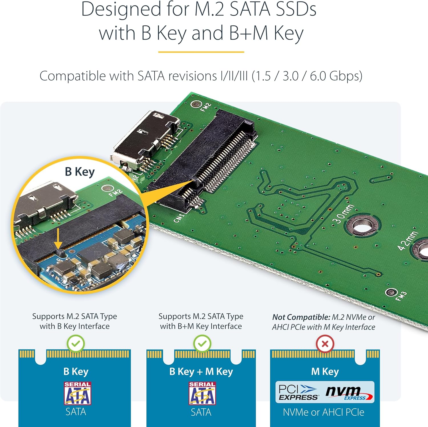 - Broad compatibility with support for the most common M.2 SATA SSDs 30mm, 42mm, 60mm, 80mm (Not compatible with M.2 NVMe or AHCI PCI-Express SSDs)