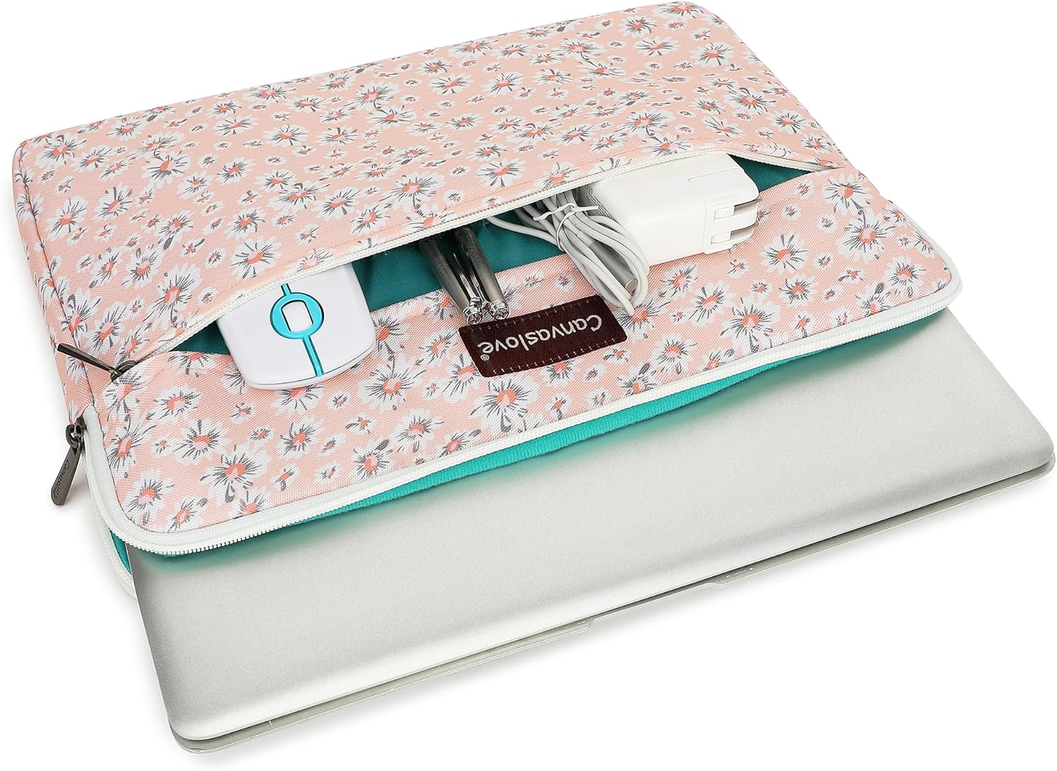 Canvaslove Pink Chrysanthemum Laptop Sleeve Case Bag With Pocket for MacBook Pro 14 inch,Surface Laptop 14.4 inch and HP Lenovo Dell ASUS Acer 14 inch Laptop Computer