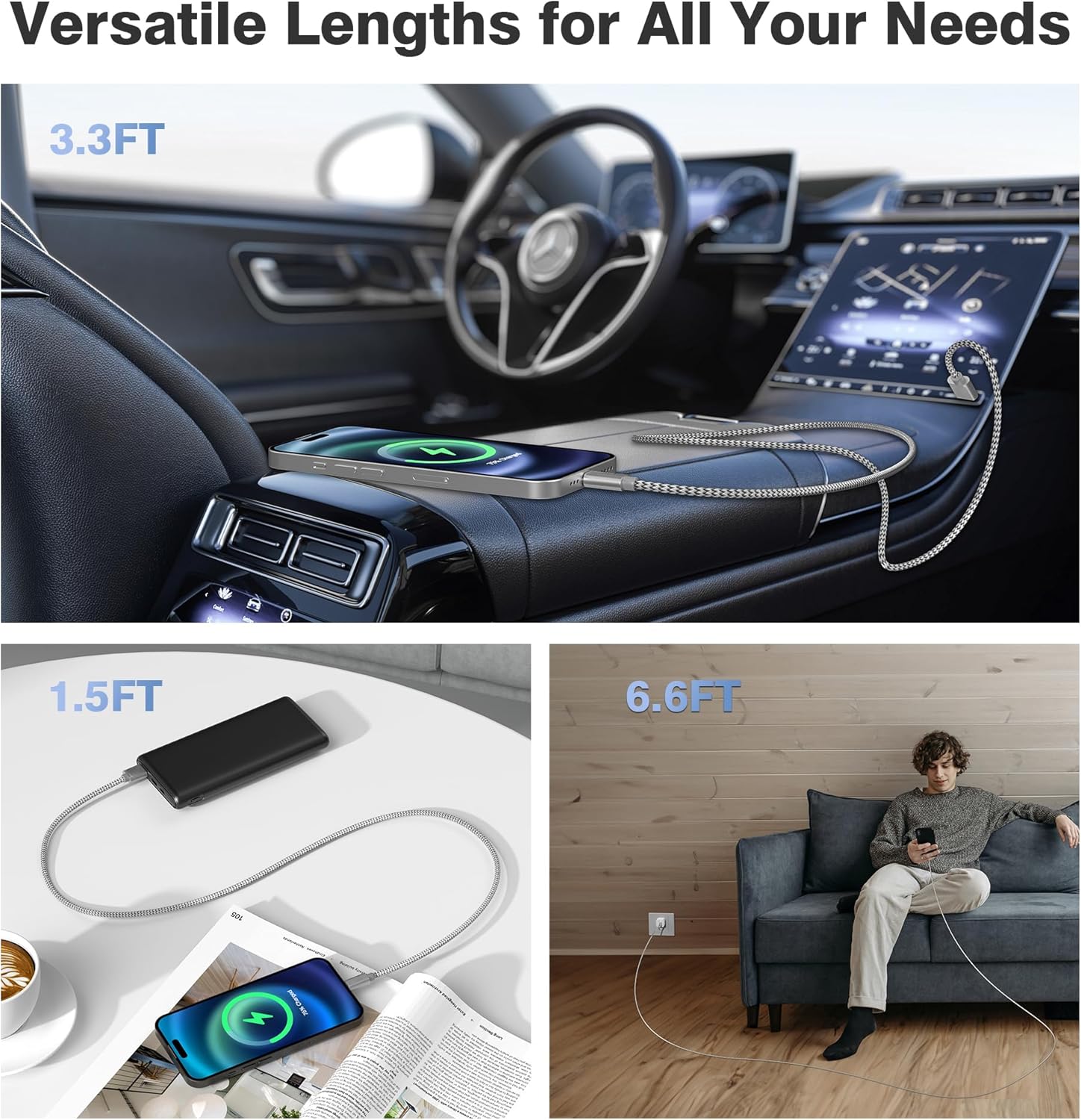 Elebase iPhone 16 15 Pro Max Charger Cord 1.5/3.3/6.6FT 3 Pack,USB to USB Type C Car Charging Cable,USBC Power Cable for New Apple iPad mini Air,Airpods 4,Samsung Galaxy S25 S24 S23 Plus Ultra,Z Flip