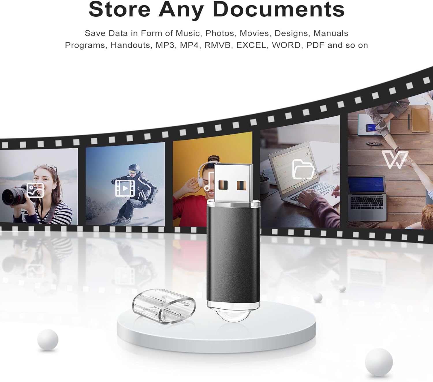 - MULTI-FORMAT SUPPORTED - The thumb drives can be used for sharing, transferring, and storing digital data. Save data as MP3, MP4, RMVB, Excel, Word, PDF, and other formats for use in music, pictures, movies, designs, manuals, programs, and handouts