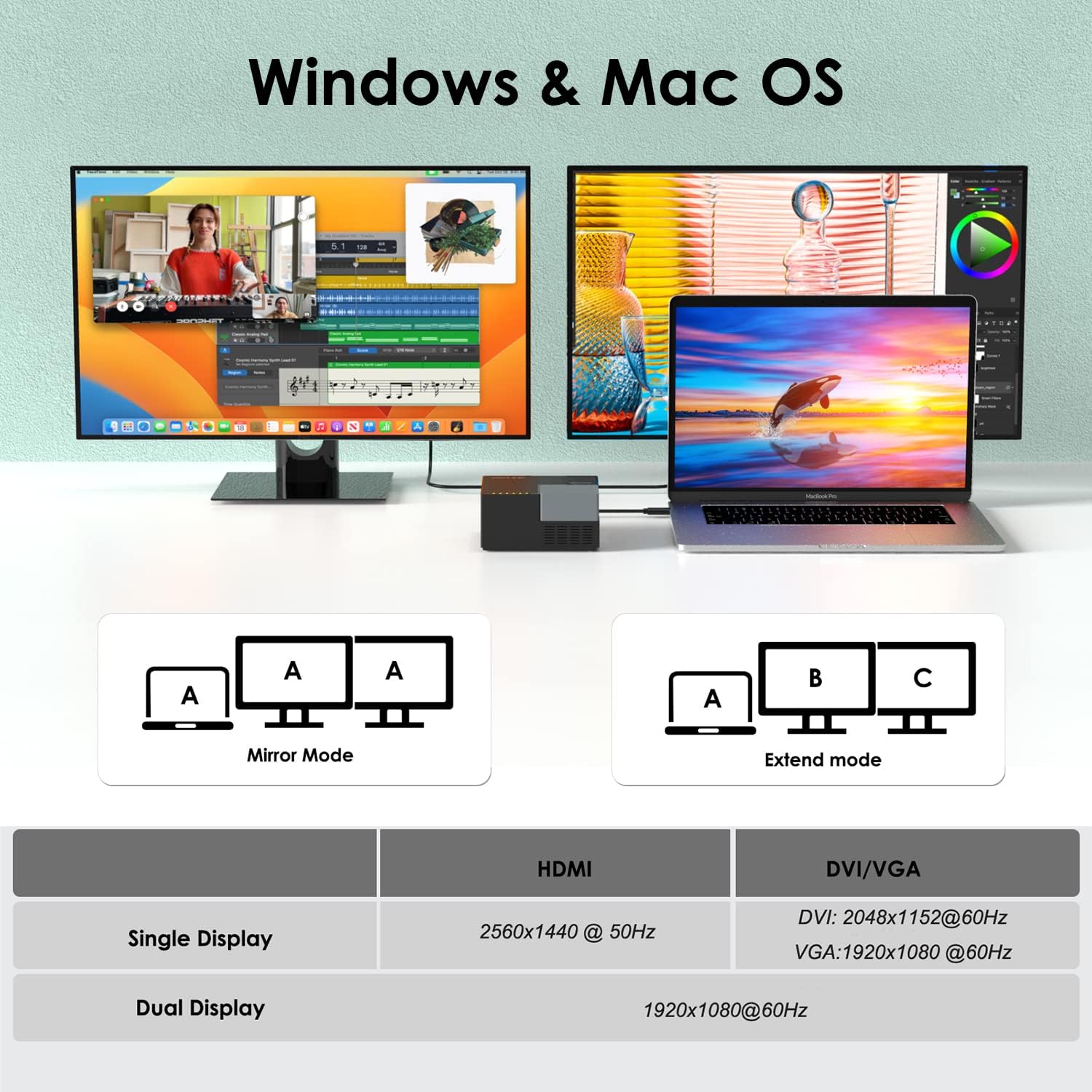 - System Support: Windows 10, 8, 7,& legacy XP systems,Chrome OS R55, macOS 10.15.1 later. Surface RT, Mac OS/Linux/Unix are not supported. Docking station is suggested for use with web and productivity software; not recommended for gaming(see Display Link website for more details)