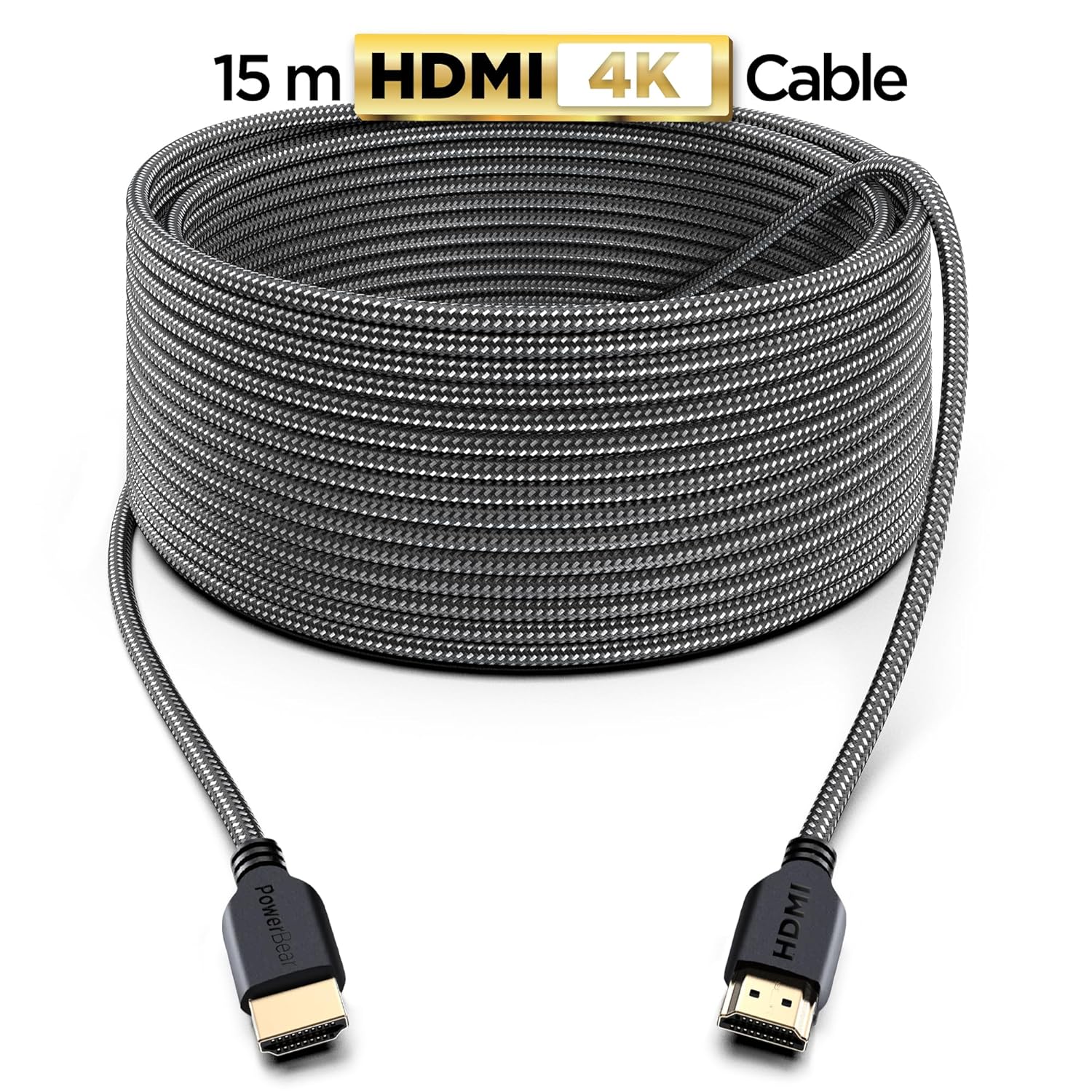 PowerBear 4K HDMI Cable 50 ft | High Speed, Braided Nylon & Gold Connectors, 4K @ 60Hz, Ultra HD, 2K, 1080P, ARC & CL3 Rated | for Laptop, Monitor, PS5, PS4, Xbox One, Fire TV, Apple TV & More
