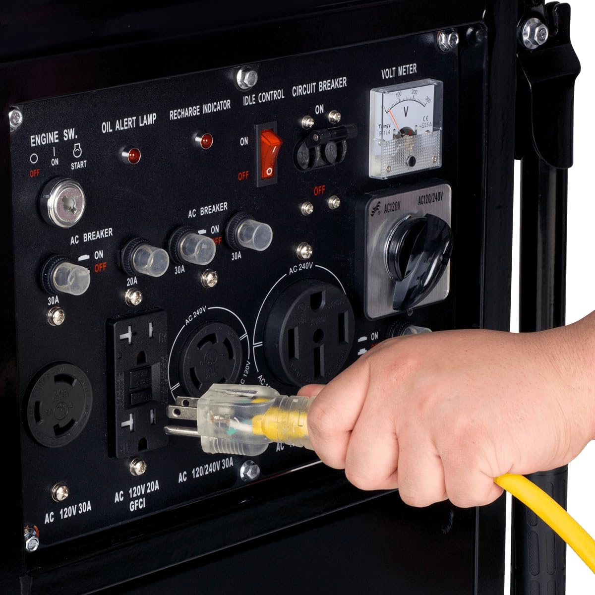 - Plenty of power: with 12, 000 starting watts and 9, 500 running watts, This unit can handle heavy loads from lights and a refrigerator to a home air conditioner and high amperage power tools.