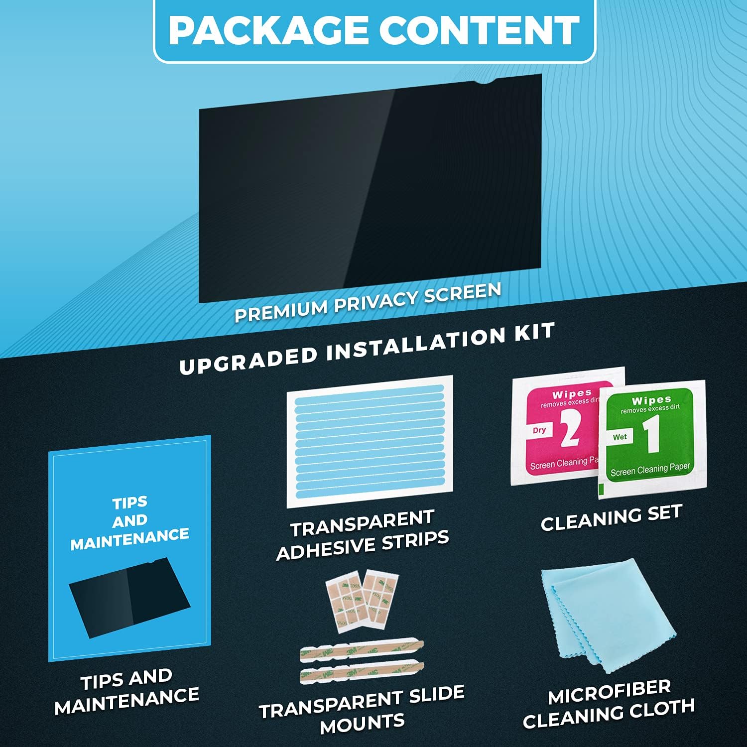 - ใ๐ช๐ต๐ฎ๐โ๐ ๐๐ป๐ฐ๐น๐๐ฑ๐ฒ๐ฑใ Each set comes with a privacy screen filter, installation guide, adhesive strips, slide-mount tabs, and a cleaning cloth. Ideal for protecting your screen privacy while traveling or working in shared environments.