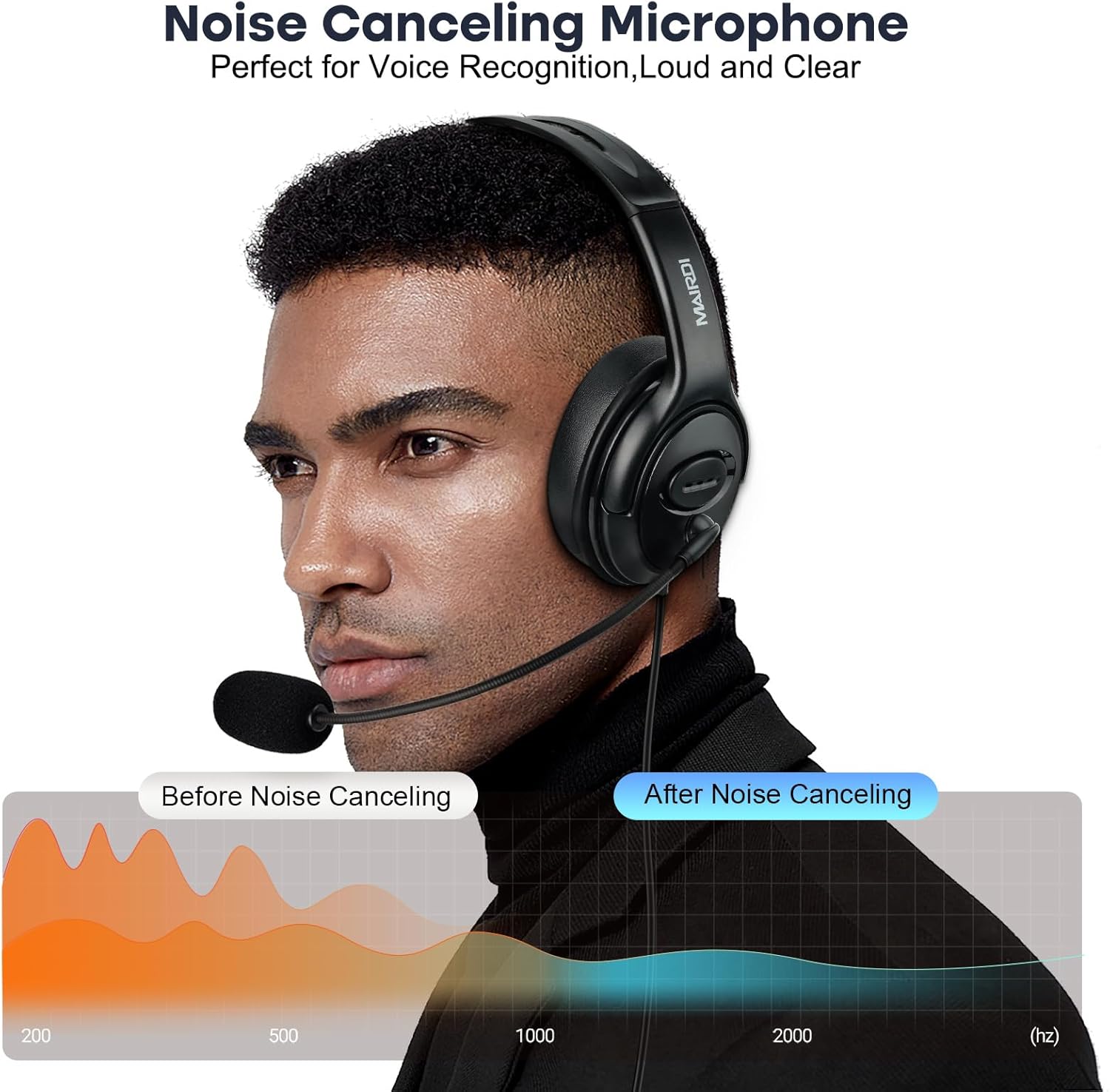 MAIRDI USB Headset with Microphone for PC, Computer Headset with Mic Noise Canceling for Laptop Teams Zoom Office Work Call Center Business Softphone, Dictation Headset for Dragon Naturelly Speaking