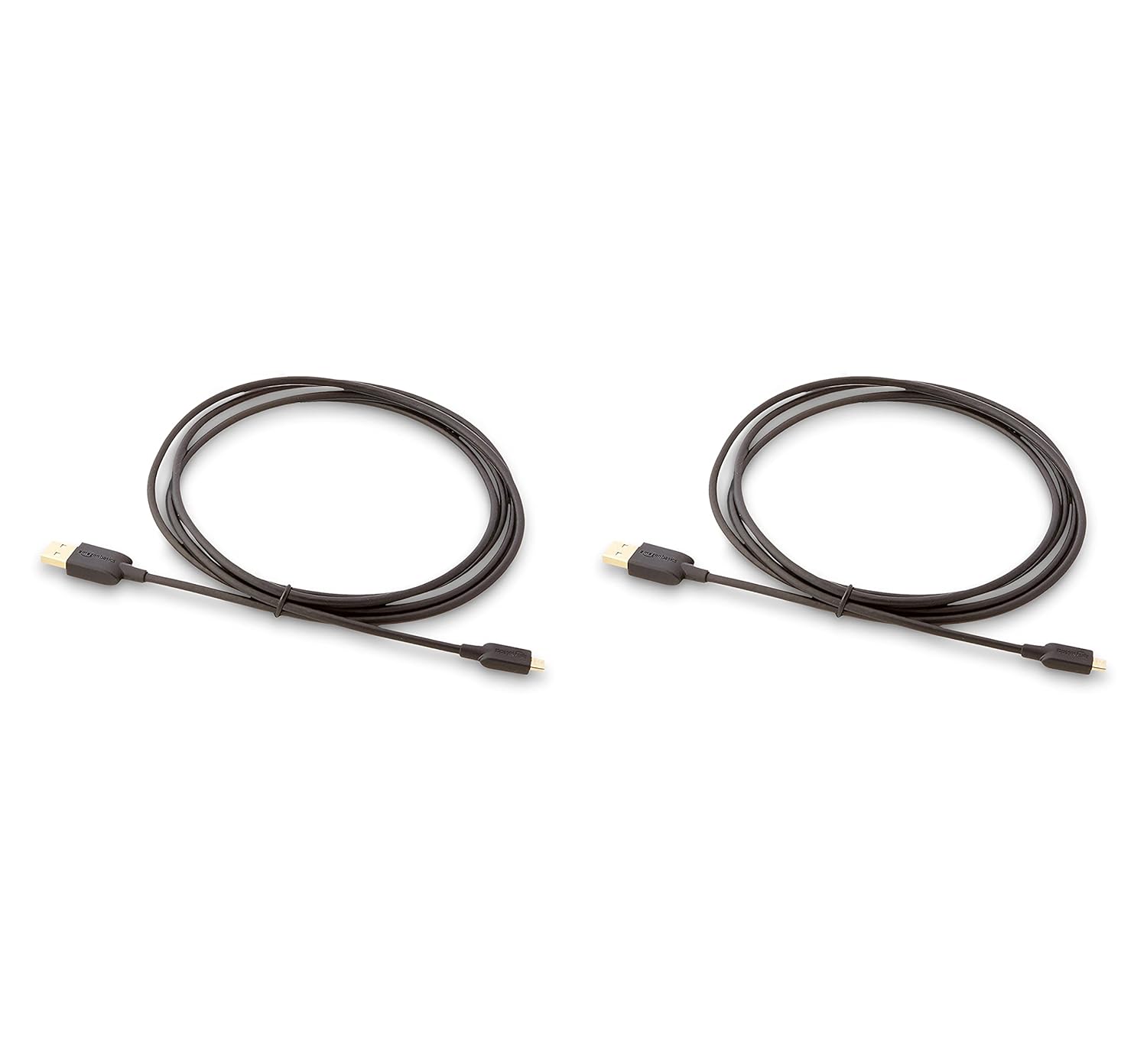 Amazon Basics 2-Pack USB-A to Micro USB Charging Cable, 480Mbps Transfer Speed with Gold-Plated Plugs, USB 2.0, 6 Foot, Black