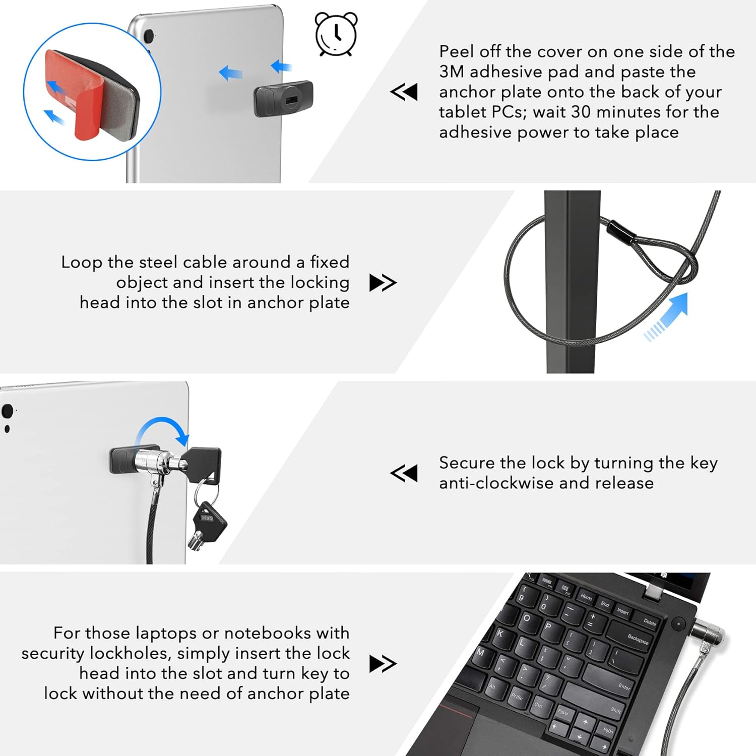 AboveTEK Laptop Lock, Tablet Lock Security Cable, 2 Keys Sturdy Steel iPad Locking Kit w/Adhesive Anchors, Anti Theft Hardware Protection for iPhone Mobile Notebook Computer Monitor MacBook Laptop