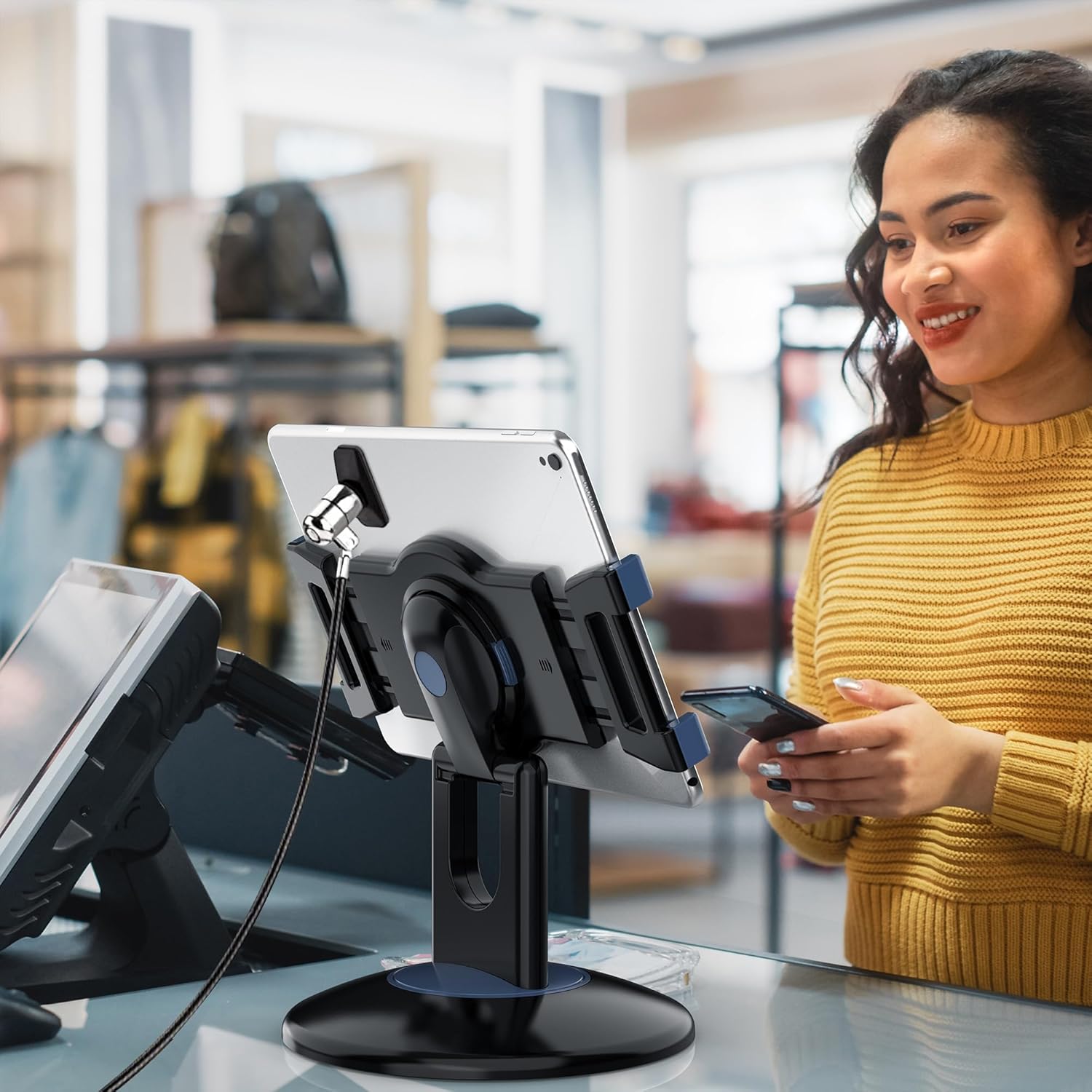 - Premium Steel Design: Cut-resistant galvanized steel cable (6 feet) allows easy iPad or iPhone movement while secured. The high-quality stainless steel lock resists damage and ensures smooth operation, making it an ideal iPad locking stand when paired with our AboveTEK Tablet Stand.