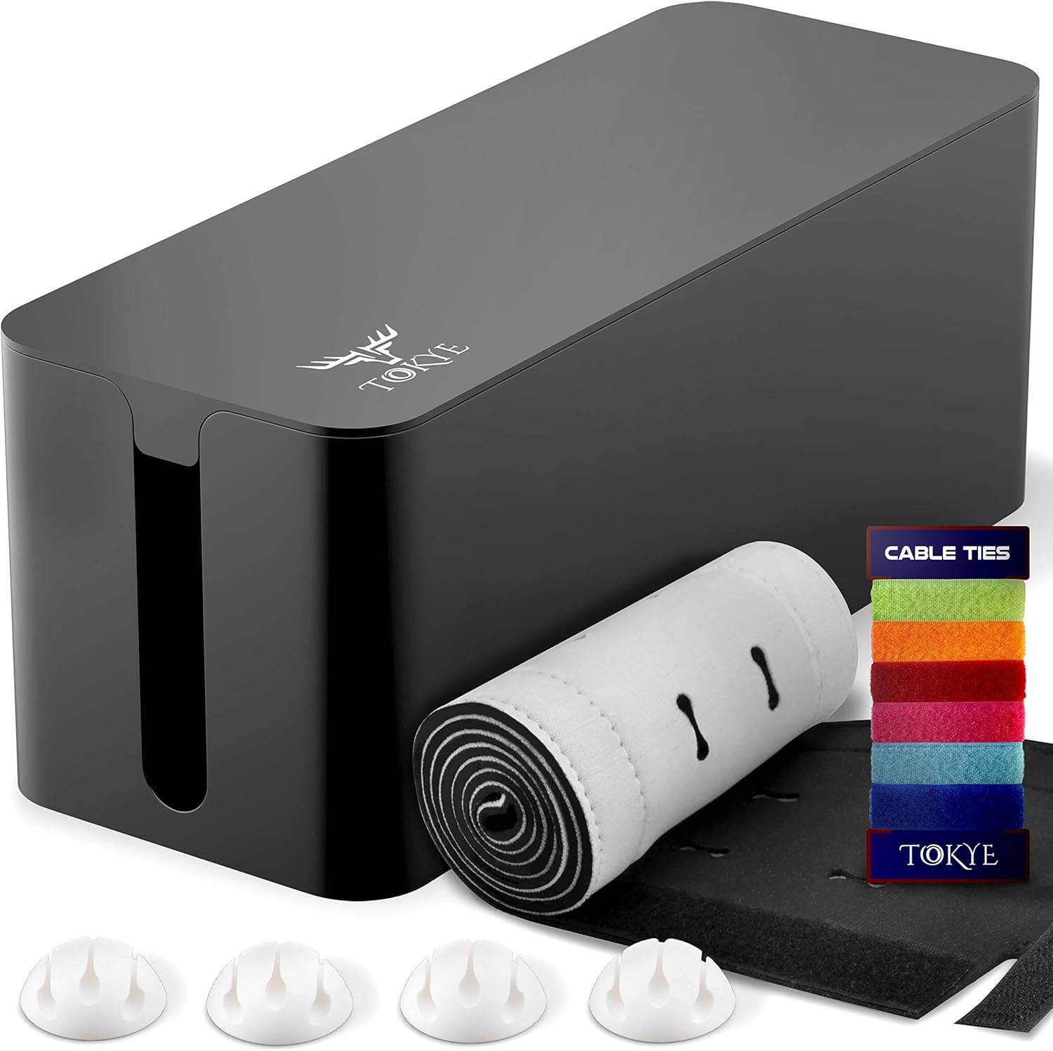 - Cable Organizer Box: Our cable management box black is a streamlined, discreet design, used as a cord hider box and wire organizer. Loose wires create confusion, can get damaged, and look unsightly. Solve all your problems at once with a Tokye cord organizer.