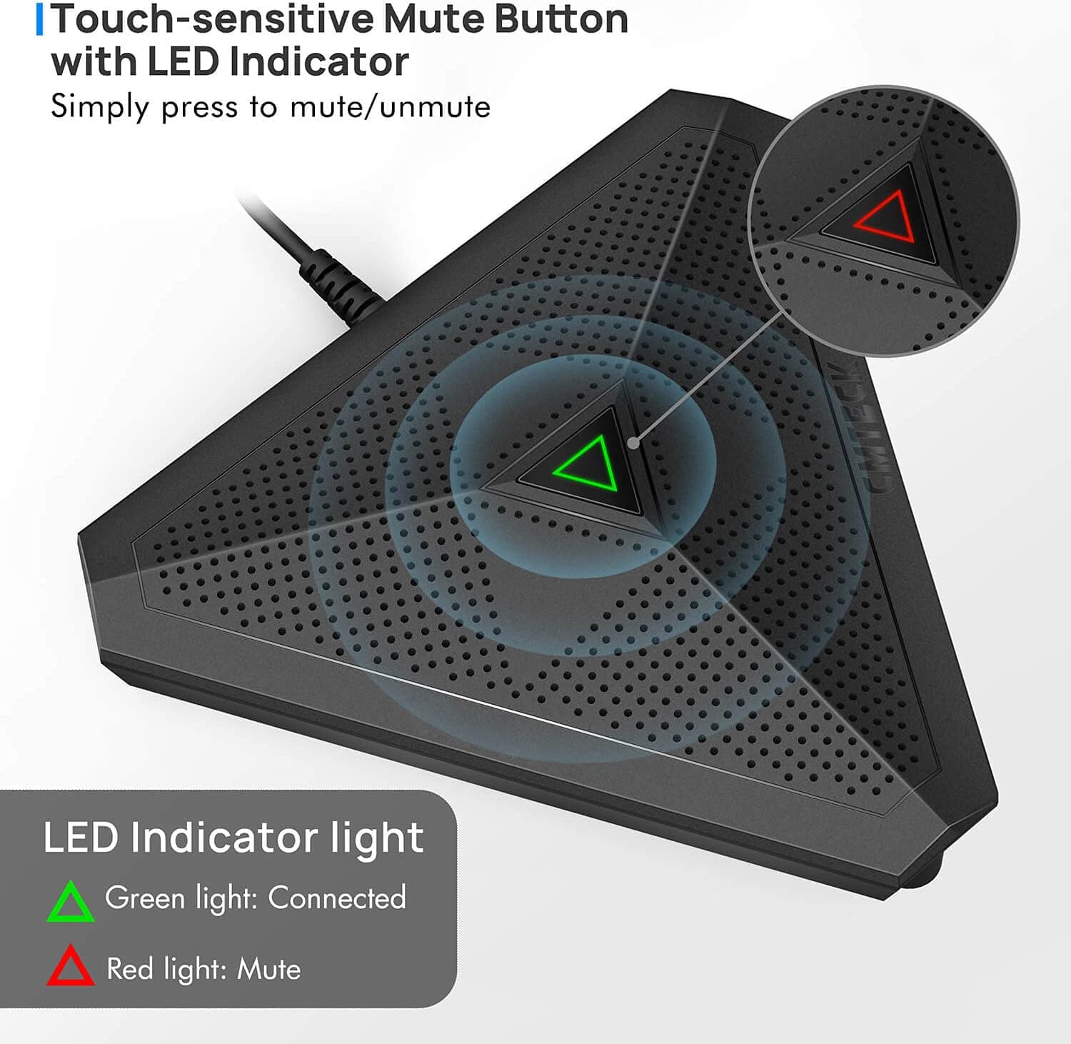 CMTECK Conference USB Microphone, Mute Button, Omnidirectional Condenser Boundary Mic for Recording, Streaming, Gaming, Skype (Windows/macOS)-Without Speaker