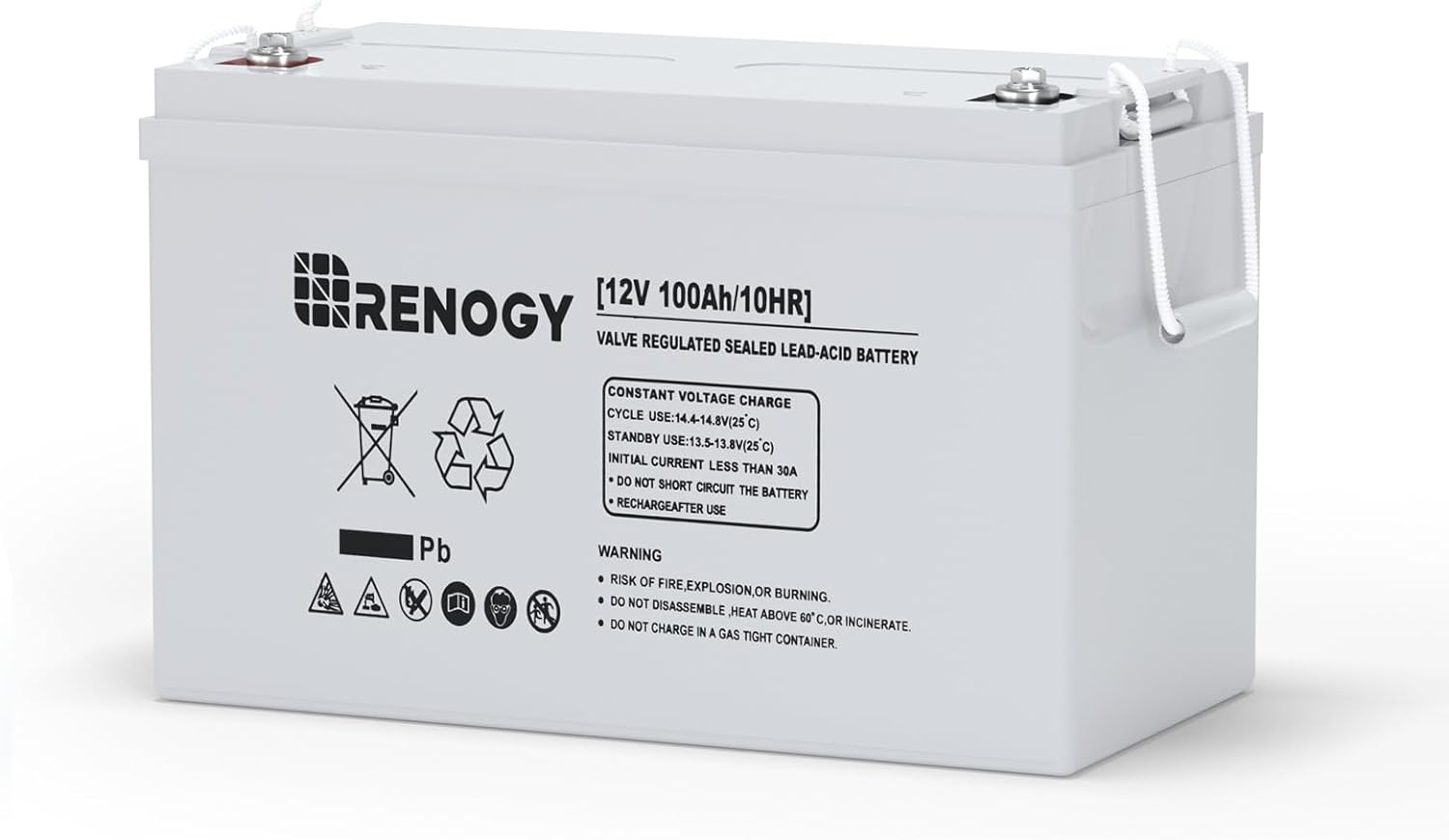 Renogy Deep Cycle AGM 12 Volt 100Ah Battery, 3% Self-Discharge Rate, 1100A Max Discharge Current, Safe Charge Appliances for RV, Camping, Cabin, Marine and Off-Grid System, Maintenance-Free