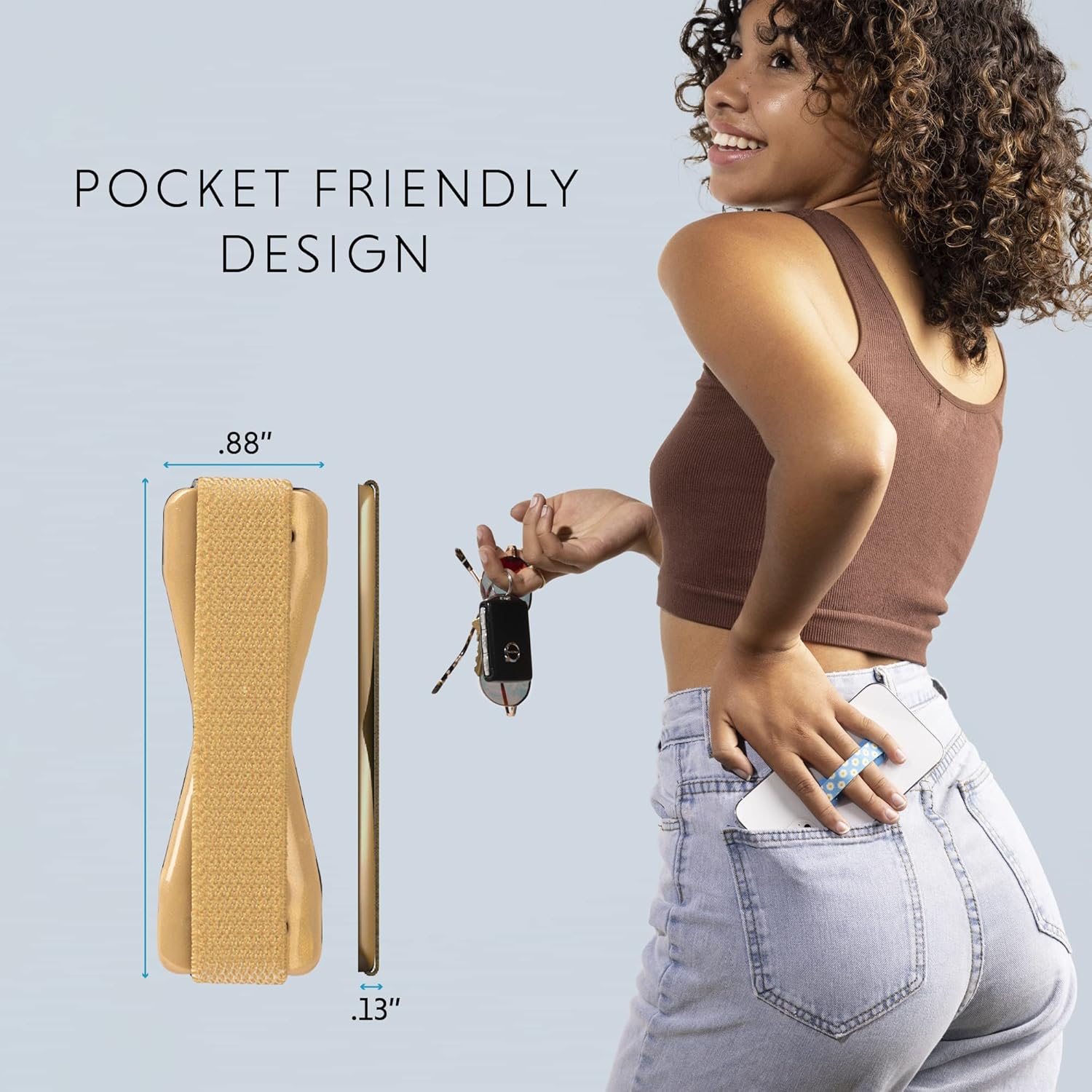 - THIN AND SLEEK: This pocket-friendly phone holder makes for easy texting, selfies, and photos with a one-handed or even no-handed grip. It has an ergonomic design and easily affixes to your phone with a removable, no-residue 3M adhesive. Compatible with all smartphones and tablets