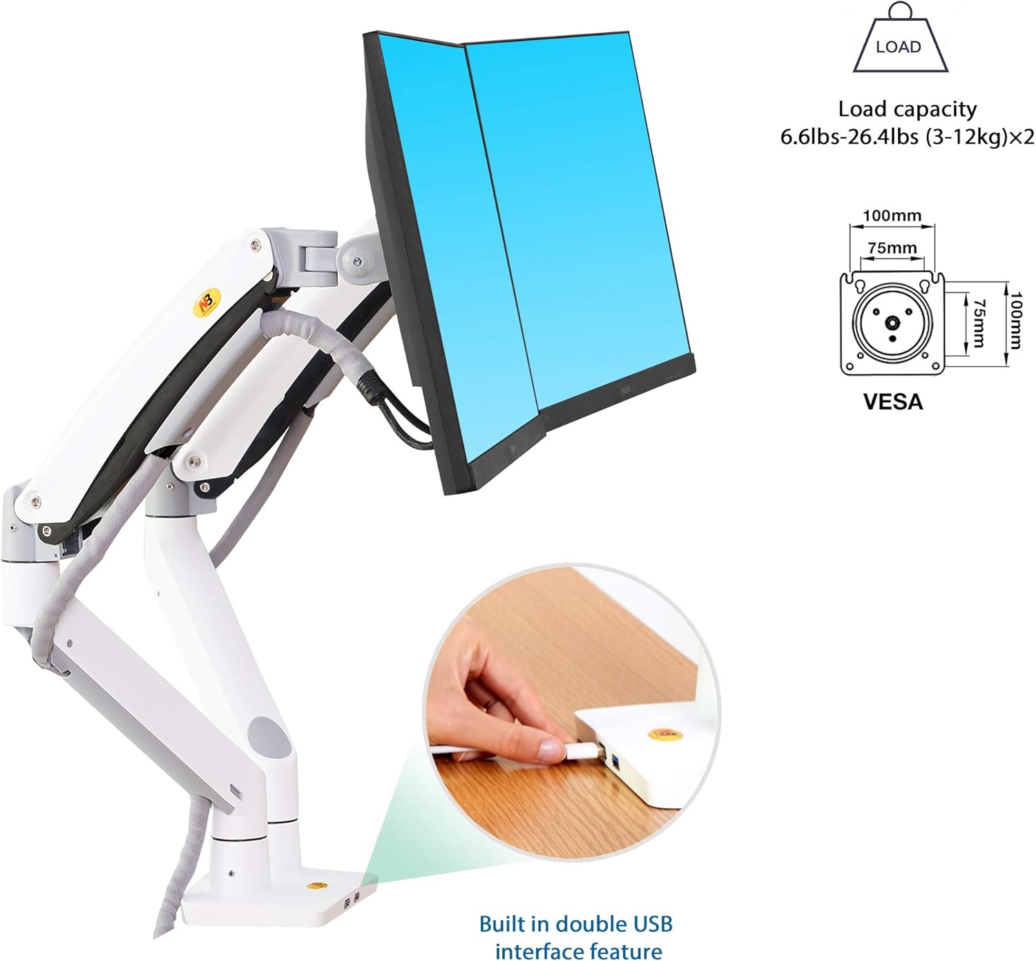 NB North Bayou Dual Monitor Desk Mount Stand Full Motion Swivel Computer Monitor Arm Fits 2 Screens up to 32'' with Load Capacity 6.6~26.4lbs for Each Monitor G75-W