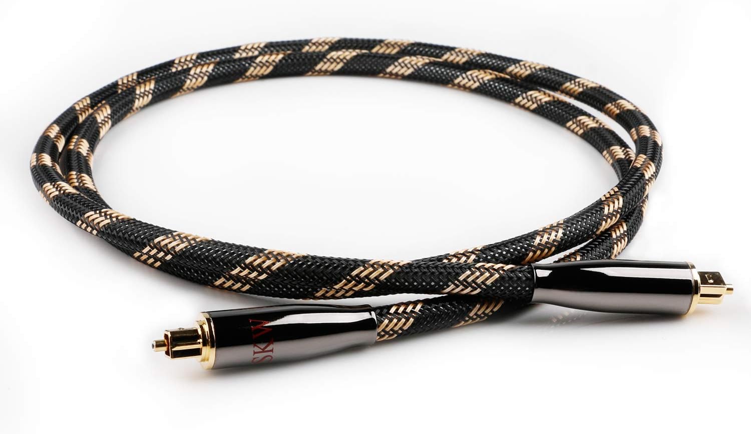 SKW Optical Digital Audio Toslink Cable Home Theater Fiber Optic Male to Male Gold Plated S/PDIF Cables - Copper Connectors, High-Reinforced Transparent Polymer Core, Nylon Braided 6.5ft(2M)