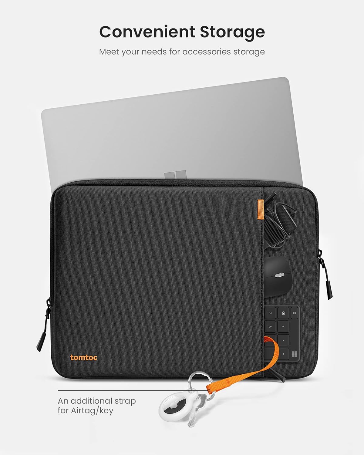 - Military-Grade Protection: To combat the toughest situations: from falls to shocks to vibrations, tomtoc proposed the concept of 360 protection and designed the laptop sleeve with CornerArmor Technology, high resilience edges, and high-density soft padding. It passed the Military-Standard-Drop-Test while also maintaining a sleek design
