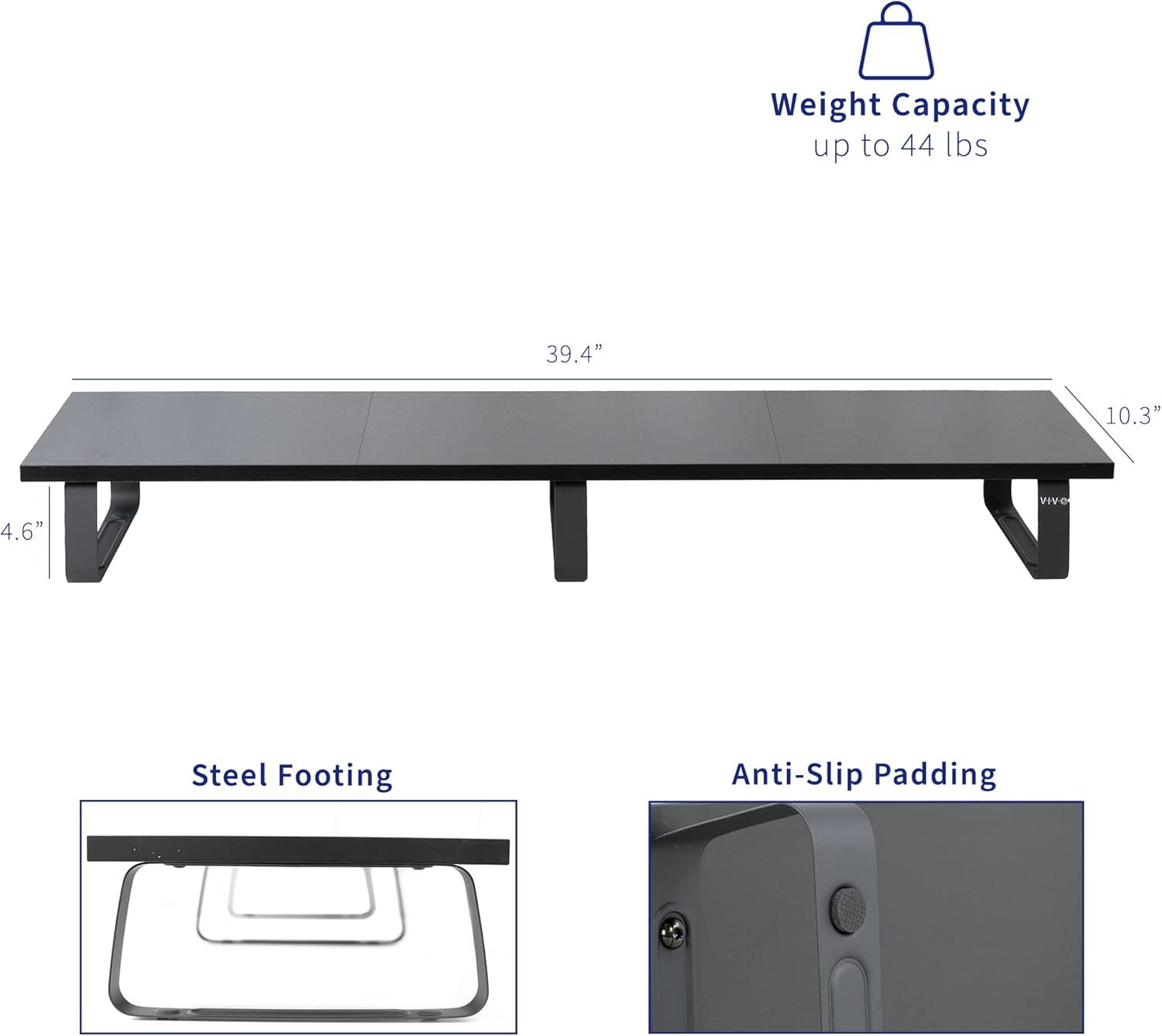 - Solid Steel Footing: Elevates your screen, providing strong support and a comfortable, ergonomic viewing position. Total capacity is 44 lbs