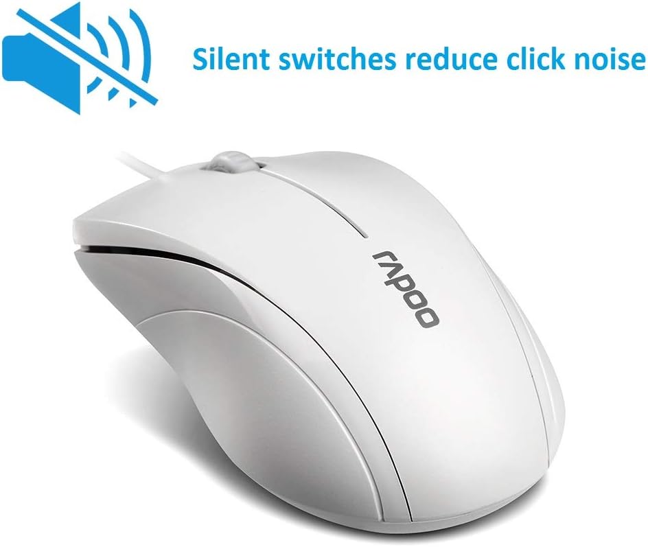 Rapoo N1600 3-Button Quiet Wired Mouse, 1000DPI Optical Mouse, Quiet Button, Ergonomic Shape, for Desktop Computers Laptops, Matte White