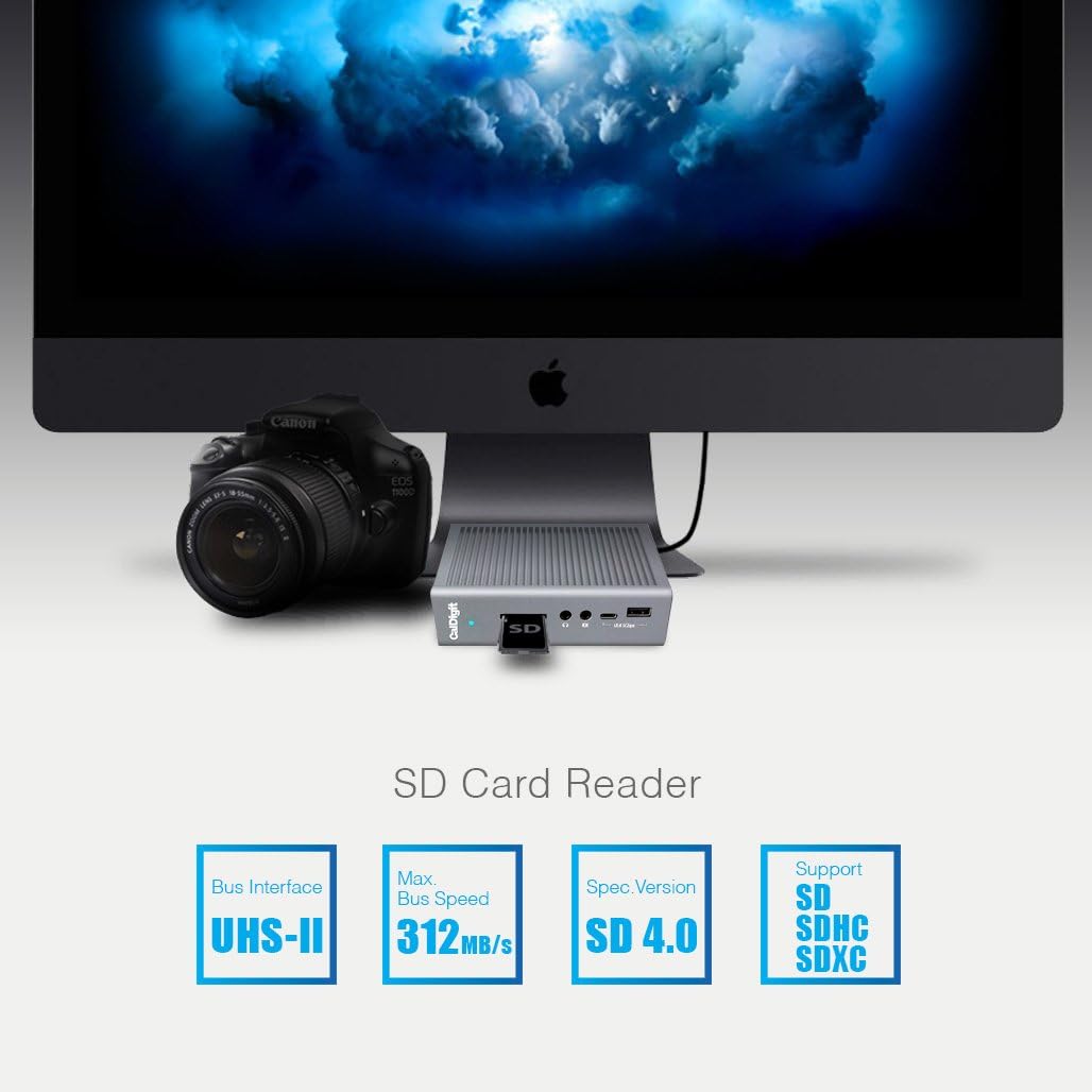 - [15 PORTS OF CONNECTIVITY]: 2x Thunderbolt 3 40Gb/s, DisplayPort 1.2, 5x USB-A & 1 USB-C 3.1 Gen 1 (5Gb/s), 1x USB-C 3.1 Gen2 (10Gb/s data only), Gigabit Ethernet, UHS-II SD Card Slot (SD 4.0), Optical Audio (S/PDIF), 3.5mm Stereo Audio In & Out. Vertical or horizontal orientation. Sturdy full aluminum construction with integrated heat sink without a fan.