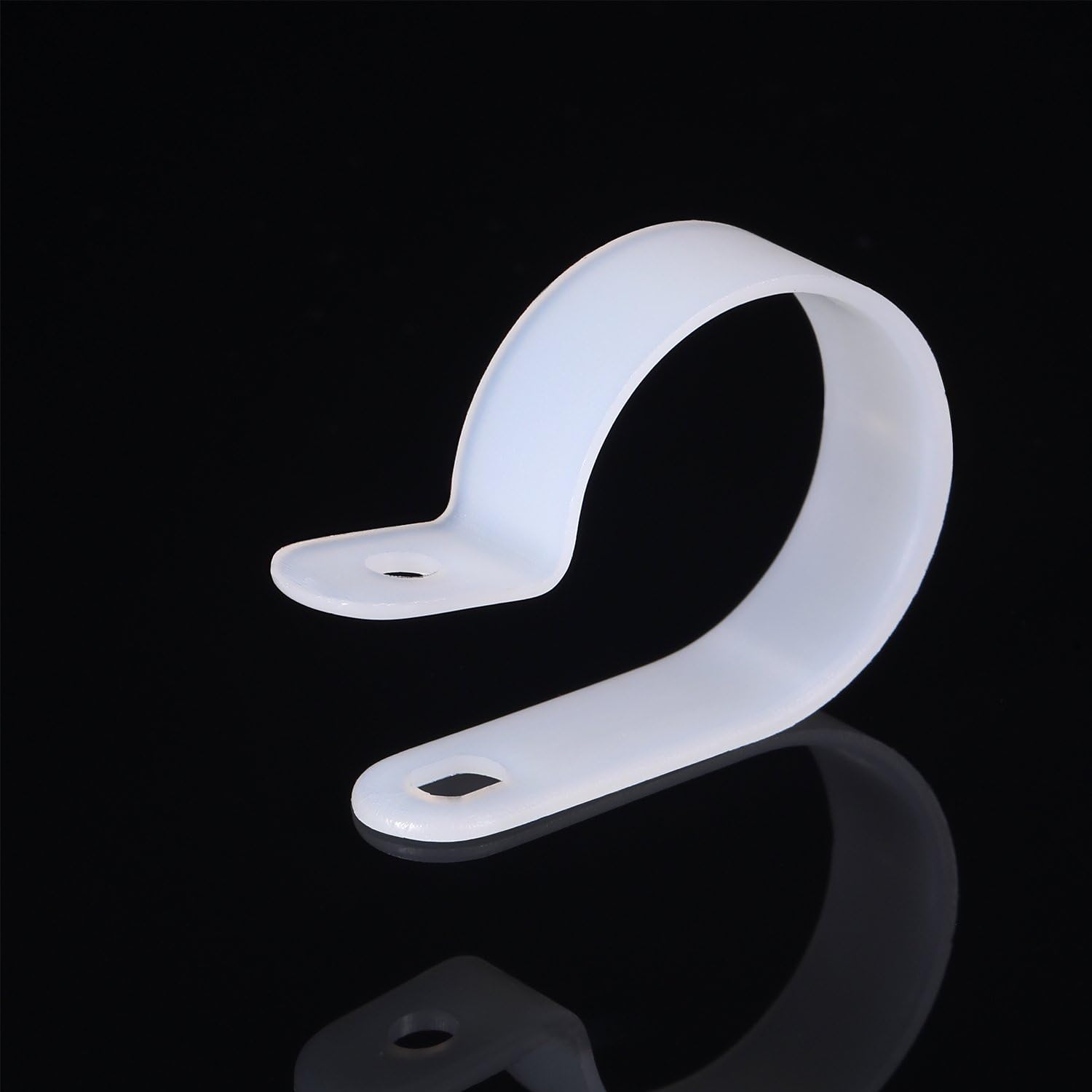Hicarer 50 Pack R-Type Cable Clip Wire Clamp, Nylon Screw Mounting Cord Fastener Clips with 50 Pack Screws for Wire Management (White, 1 Inch)