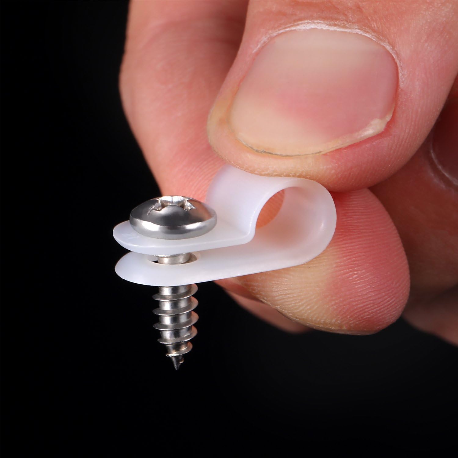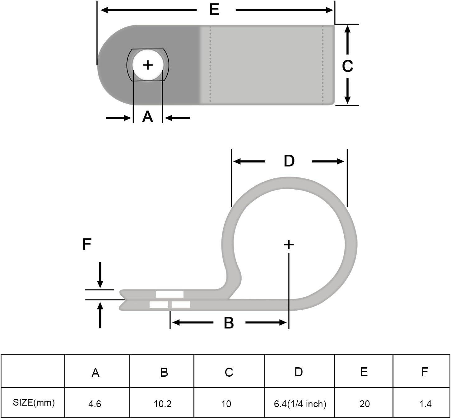 - Size: the r-type cable clip has a 1/ 4 inch closed diameter; Quantity: 50 pack r-type clamps and 50 pack matching screws, they can be applied repeatedly