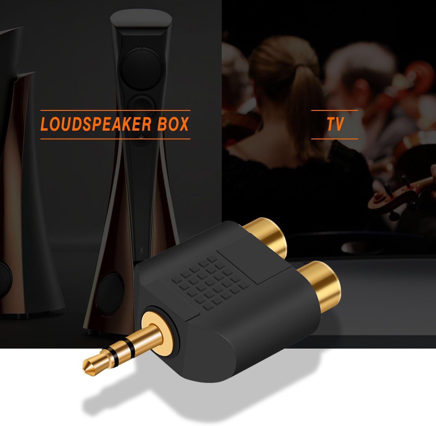 - 3.5mm Stereo to Dual RCA adapters connect smartphones, MP3 players, or headphones with stereo jack to speakers or AV receivers with RCA port.