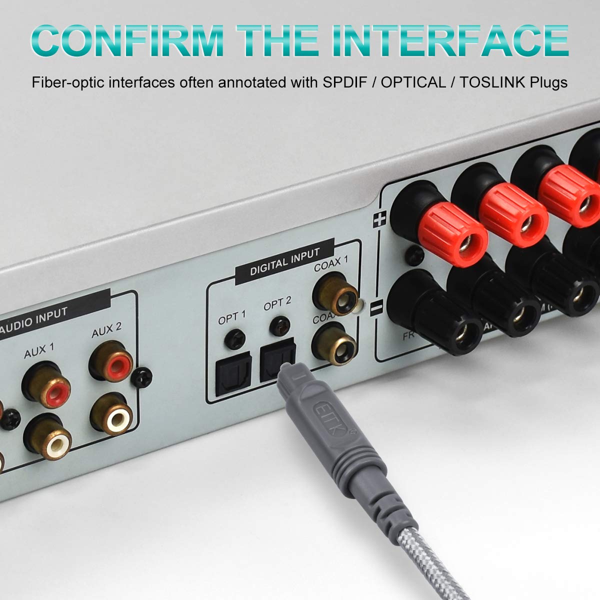 EMK Digital Optical Audio Cable Toslink Cable - [Cotton Braided Jacket,Durable and Flexible] Fiber Optic Cord for Home Theater, Sound bar, TV, PS4, Xbox & More (Grey-10Feet/3M)
