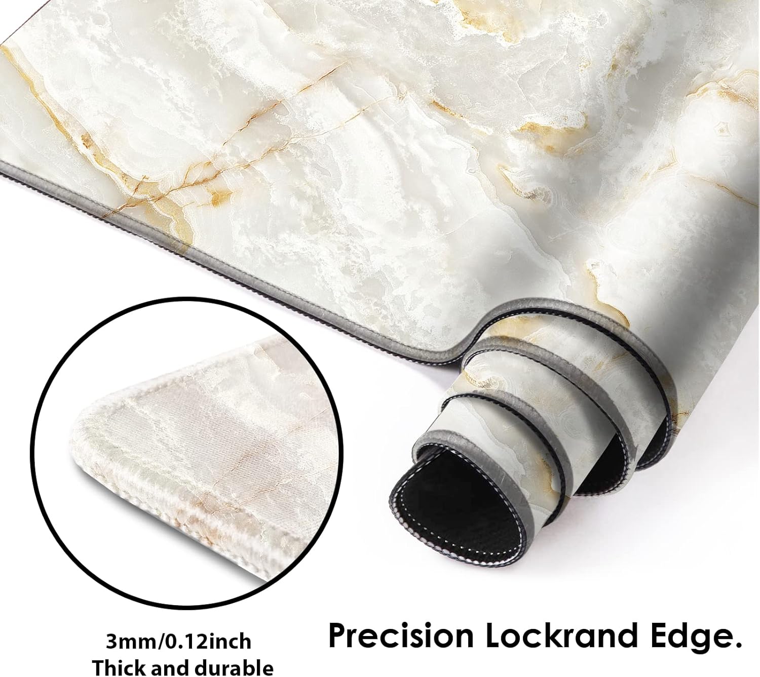Galdas Large Mouse Pad Marble Pattern XXL XL Large Mouse Pad Mat Long Extended Mousepad Desk Pad Non-Slip Rubber Mice Pads Stitched Edges Thin Pad (31.5x11.8x0.12“)