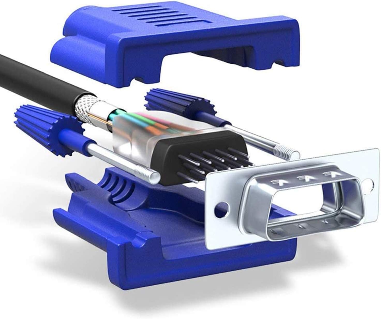 - The VGA cord engineered with molded strain relief connectors for durability, grip treads for easy plugging and unplugging, and finger-tightened screws for a secure connection