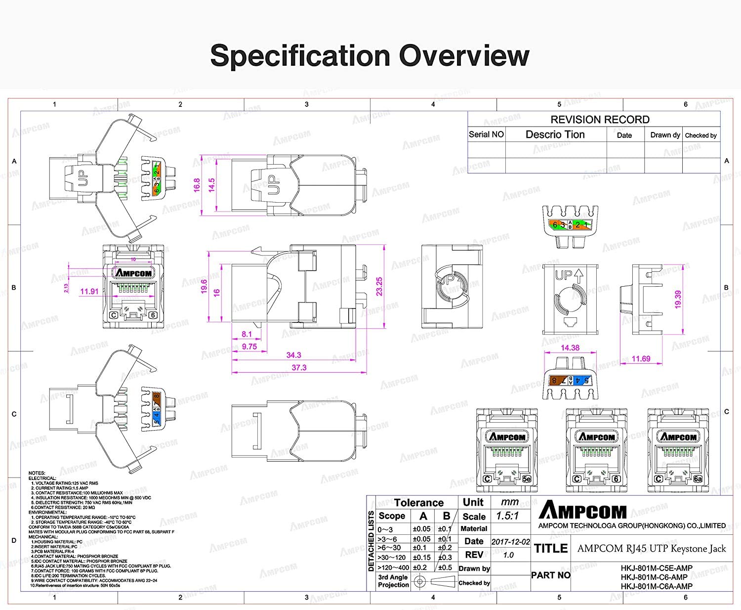- Features: Cat 6 performance to future-proof your network|Backwards compatible to 10/100/1000 Mbps Ethernet CAT5 CAT5E CAT6. Complies with the ANSI/TIA/EIA 568-C.2 standard; labeled for T568A and T568B wiring scheme next to wire clips; 110 or Krone type termination are both supportive; It accepts 22 to 26 AWG solid Ethernet Patch Cords