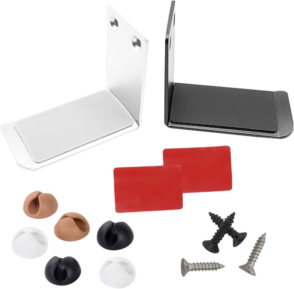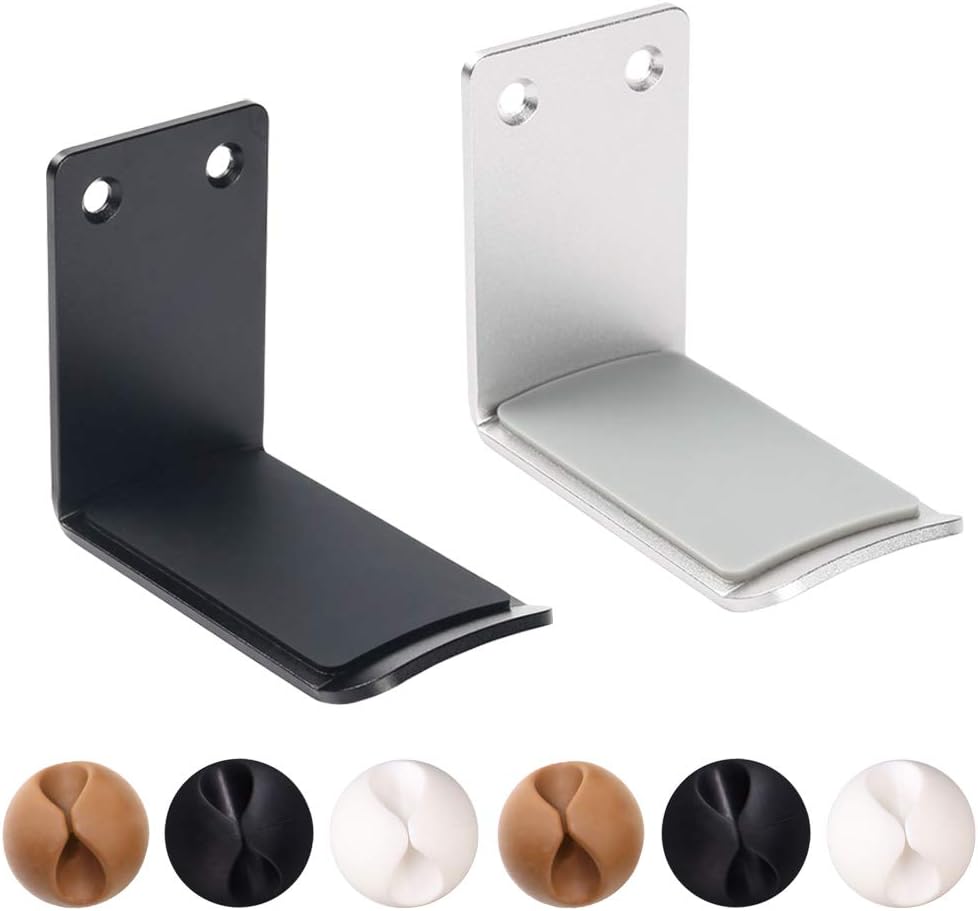 SourceTon 2 Packs Aluminum Headphone Stand Hanger and 6 Cable Clips, 2 Headset Holder Mount (Black and Silver) and 6 Cable Organizers with Strong Adhesive Tape and Screws for Headphones
