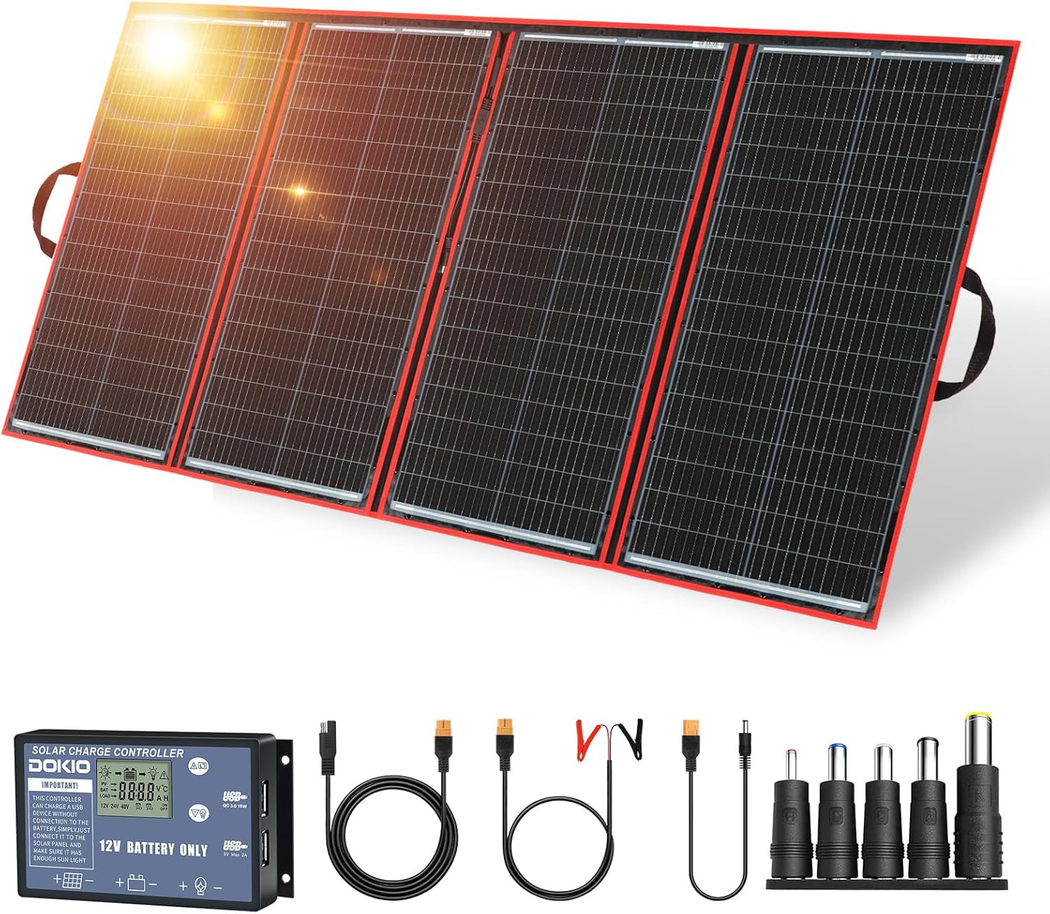 DOKIO 300W Portable Foldable Solar Panel Kit (20x38in, 15.3lb), with Separate Controller and Dual USB, Monocrystalline Charger for 12V Batteries & Power Stations, RV Camping Trailer Emergency Backup