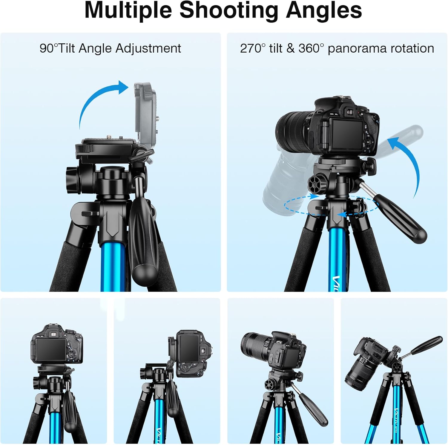 Victiv 72 inch Camera Tripod, Tall Tripod for Camera Cell Phone, Heavy Duty Camera Tripod Stand, Professional Aluminum Monopod, Compatible with Canon Nikon Sony DSLR Cameras - Blue
