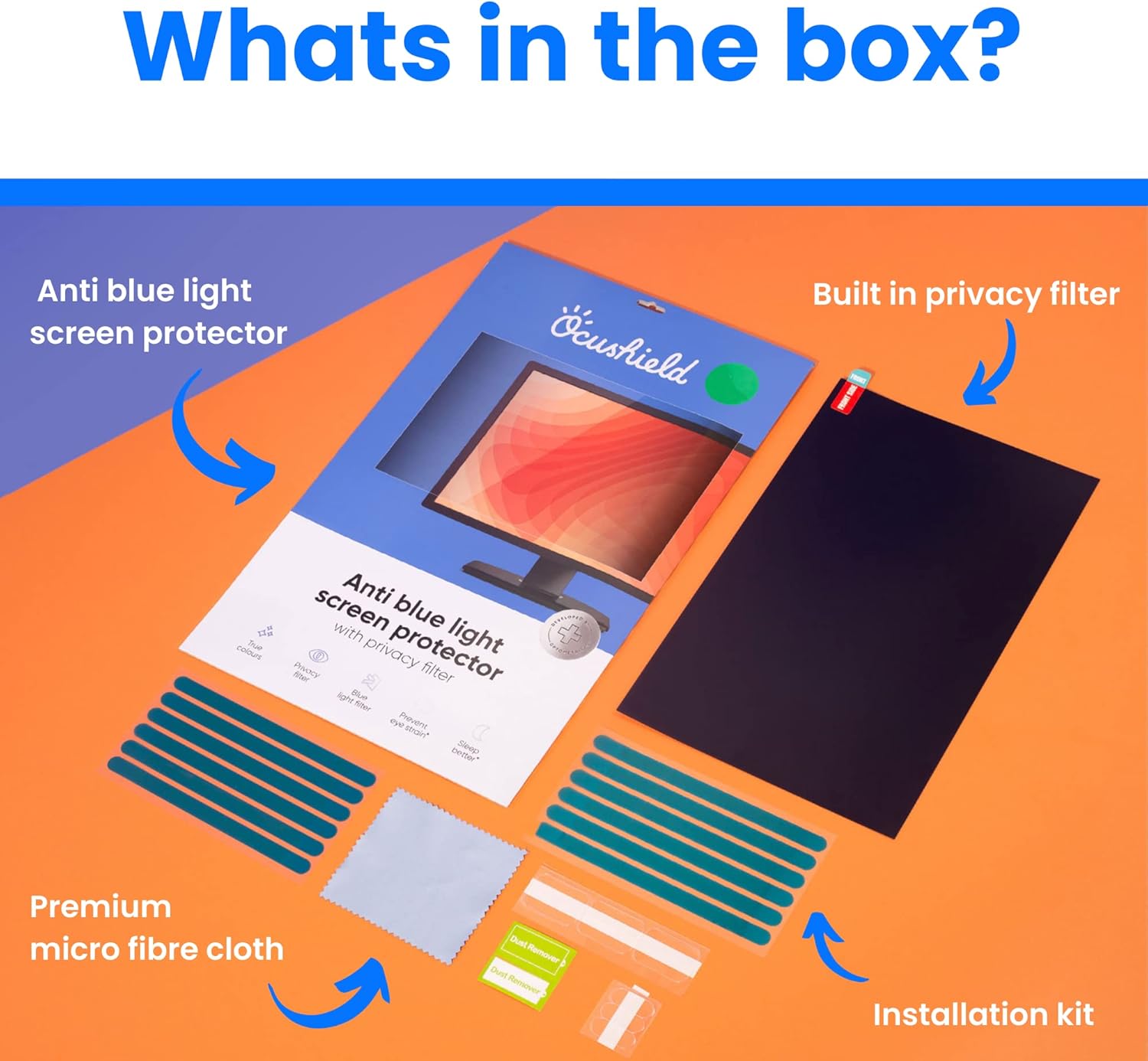 - Privacy Filter - Not only do our products protect your eyes and sleep, our monitor screen protectors include a privacy filter to keep those prying eyes away, plus oleophobic coating to ensure your screen is protected from grubby fingers.