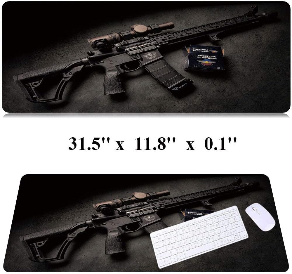 RTGGSEL 31.5x11.8 Inch Non-Slip Long Extended Large Gaming Mouse Pad with Stitched Edges XL Laptops Keyboard Mouse Mat (Black Gun)