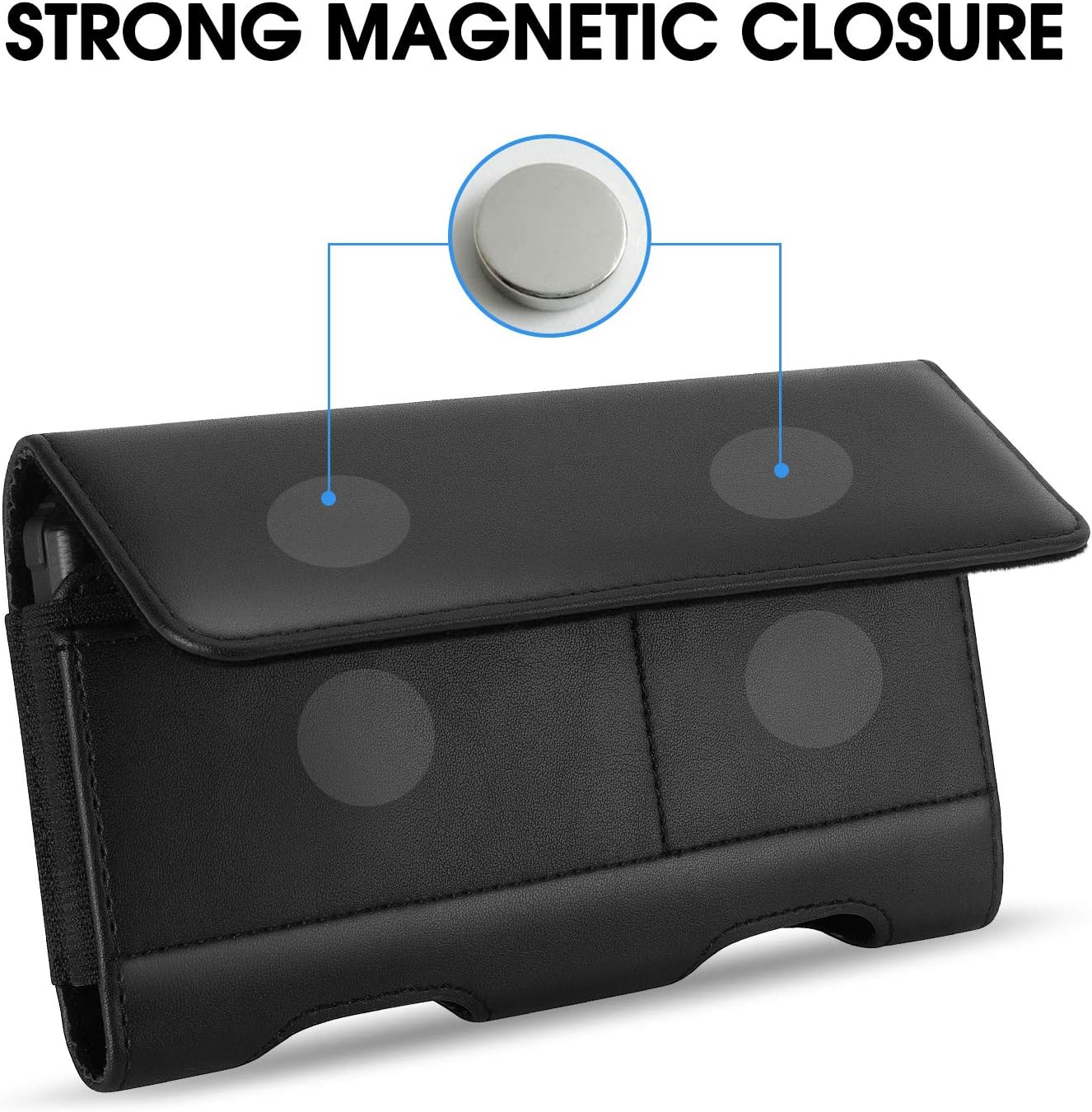 - Magnetic self-closing flap with two ID card slots.Durable Belt Clip and 2 additional secure belt loops and front magnetic closure. (Belt Clip does not move or turn)