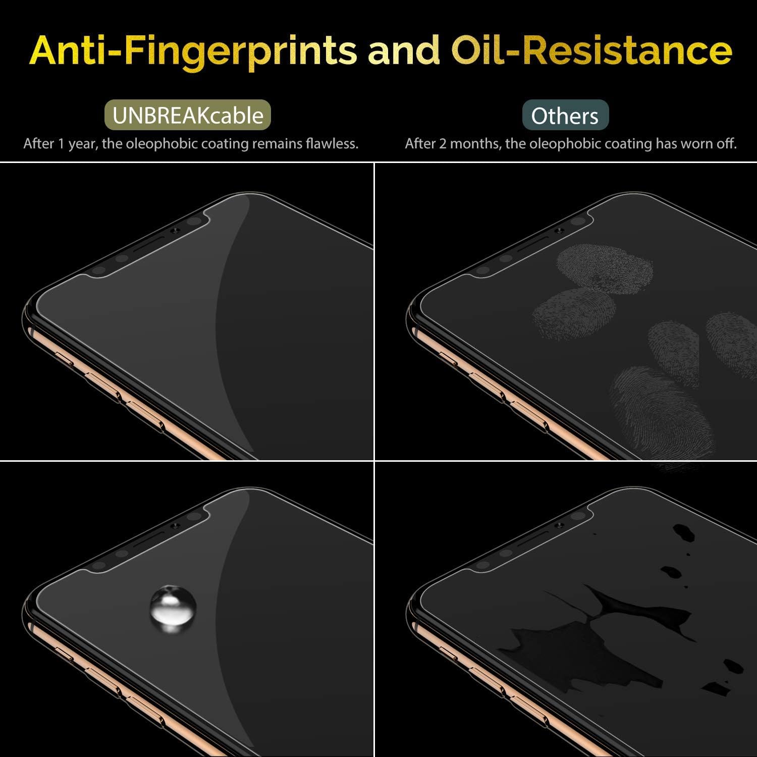 UNBREAKcable 3-Pack Screen Protector for iPhone 11 Pro/X/XS 5.8", 9H Premium Tempered Glass Screen Protector for iPhone X/iPhone Xs/iPhone 11 Pro [Easy Install, No Bubble, Anti-Scratch]