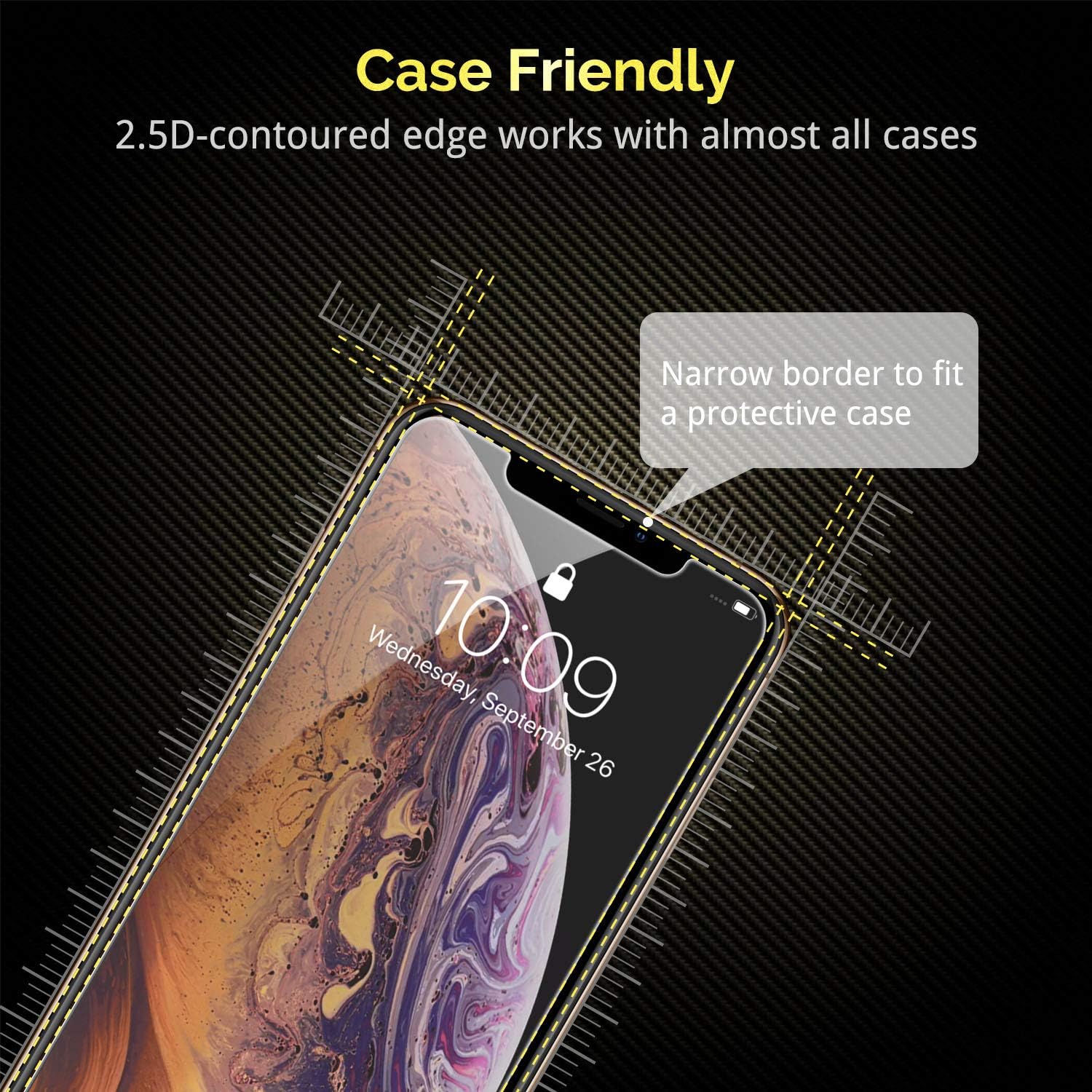 - Full Face ID Coverage: The 2.5D curved edges cut out allow the screen protector to fit the iPhone XS/X/11 Pro's active area without interference and supports Face ID.