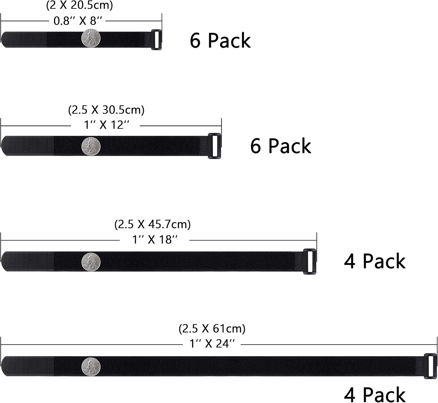 - Wisdompro retail package includes: 6 Pack 0.8x 8" Cable Tie, 6 Pack 1 x 12" Cable Tie, 4 Pack 1 x 18" Cable Tie, 4 Pack 1 x 24" Cable Tie.