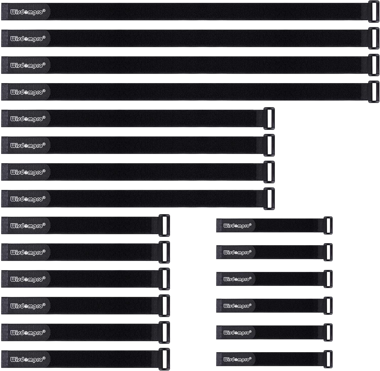 20 Pack (8 12 18 24 Inches) Hook and Loop Reusable Fastening Cable Tie Down Straps by Wisdompro - Reusable, Durable Functional Ties to Keep Your Home, Office, Workspace from Tangled Messes of Cords