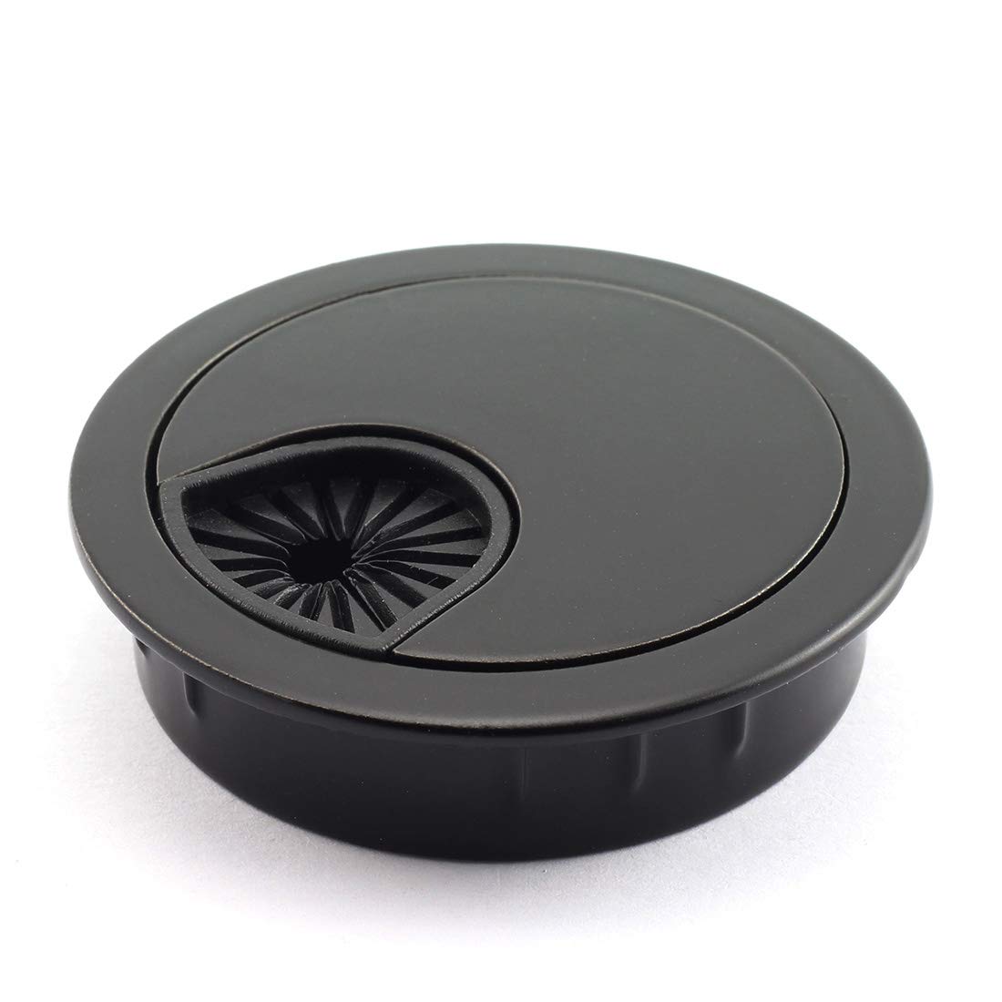HJ Garden 1pc 2 inch (50mm) Metal Desk Grommets for Managing and Hiding Wire Cord Cable Hole Cover Office PC Desk Cable Cord Organizer Zinc Alloy Cover Black