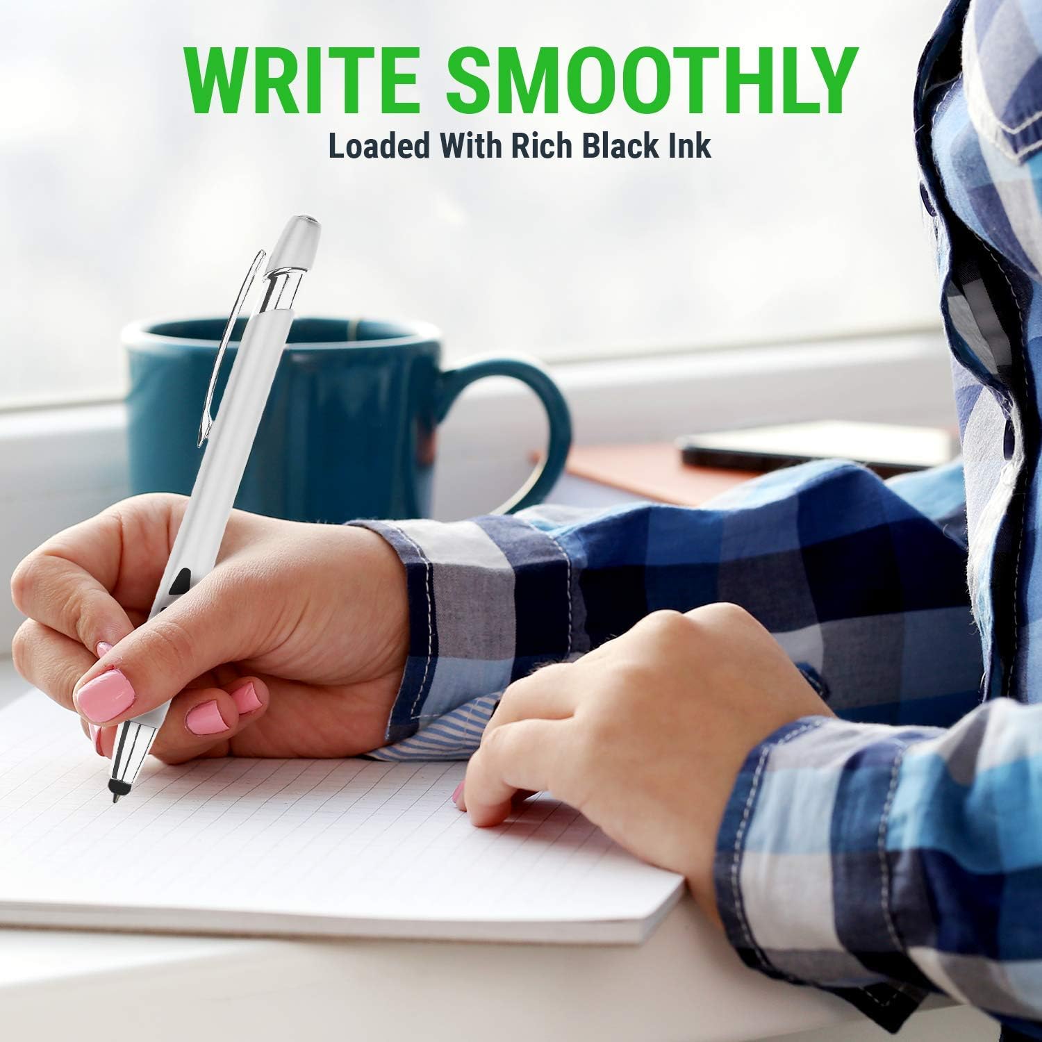 - MULTIPLE USES: Our stylus tip pens have an interchangeable tip so that you can use it on paper, tablets, & phones. Click back & forth between a stylus and ballpoint tip for your convenience.