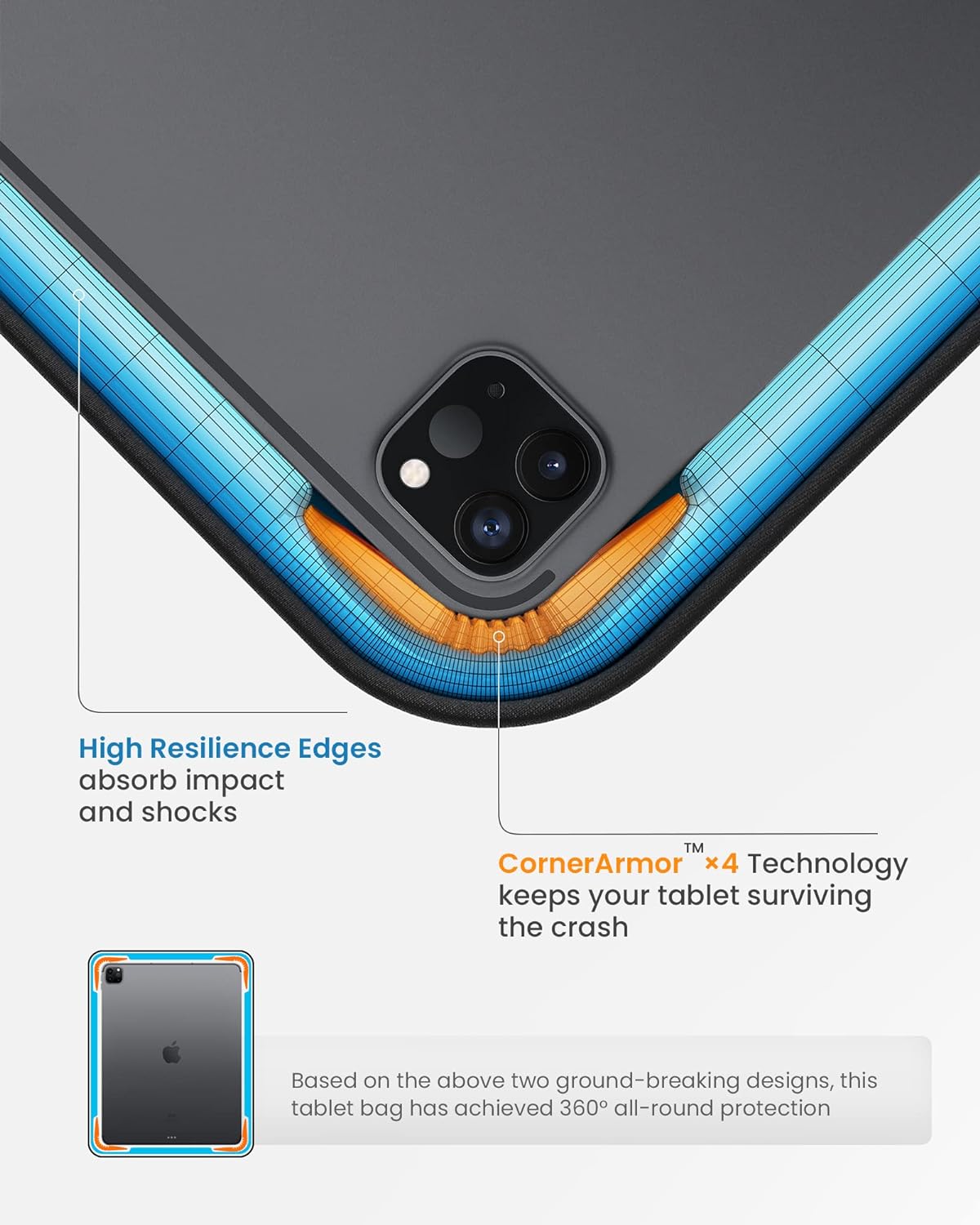- 360 ° Protection: Corner Armor patent design at the bottom corners and soft inner padding in main and front pocket protect your tablet and accessories from drops, bumps and scratches