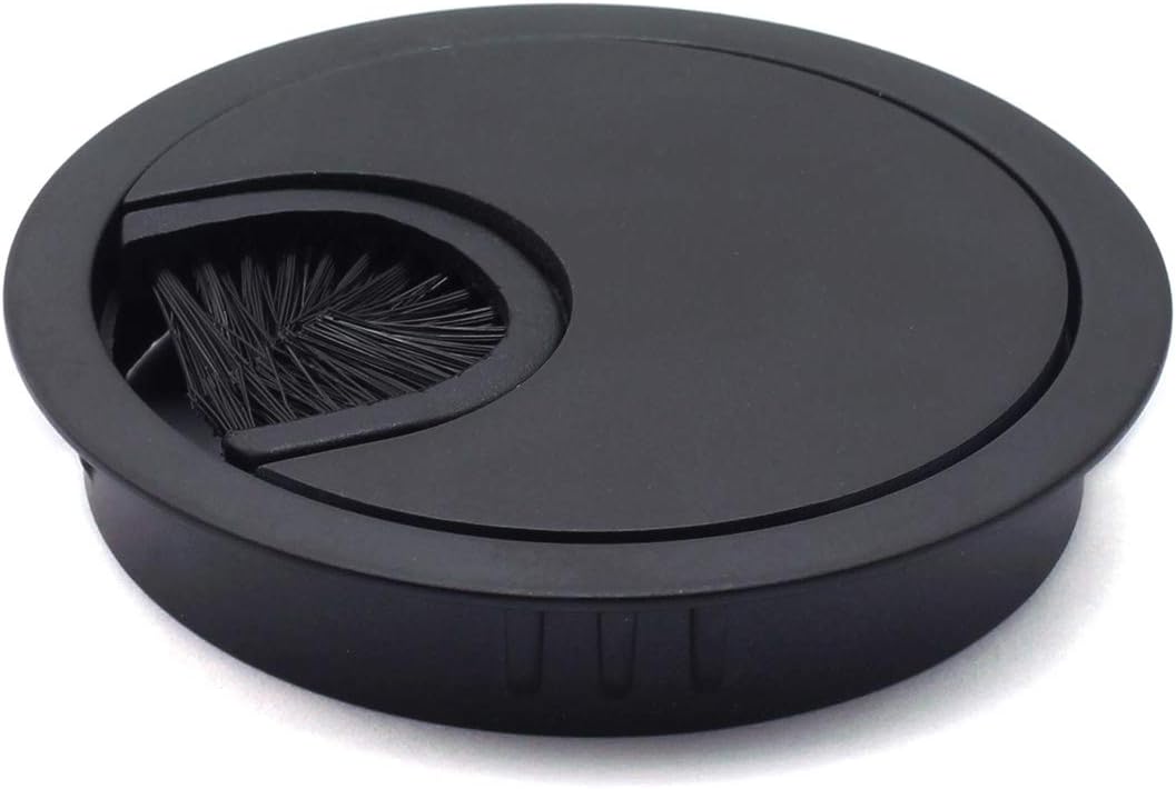 HJ Garden 1pc 2-3/8 inch (60mm) Metal Desk Grommets with Brush Open for Managing and Hiding Wire Cord Cable Hole Cover Office PC Desk Cable Cord Organizer Zinc Alloy Cover Black