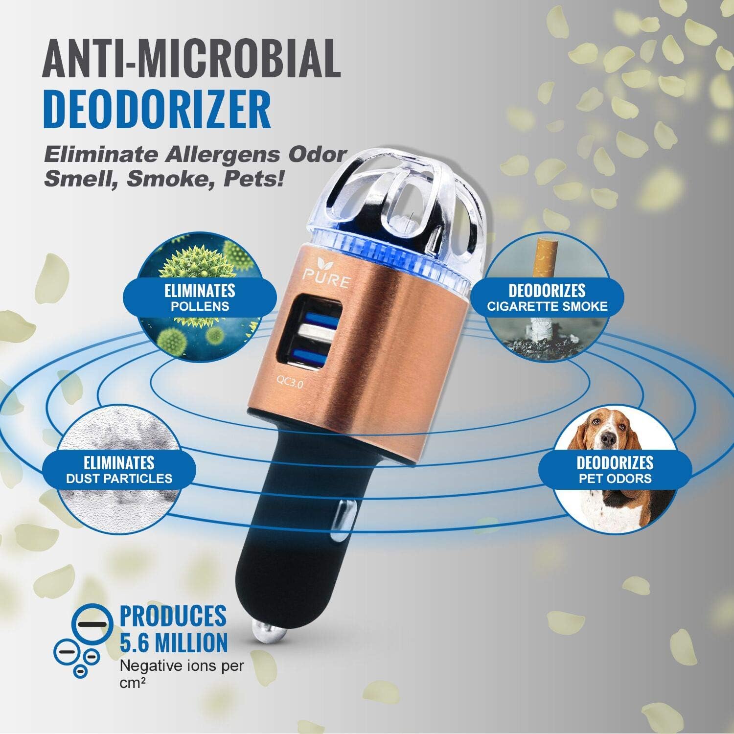- ✅[Quick Charge USB 3.0 Capability] The only model in the market with a USB 3.0 port to quick charge smart devices lightning fast. Up to 4 times faster than conventional charging methods. Definitely a must-have car accessory for all vehicle owners. Not only does the unit purify the air, it also doubles as a car charger with dual USB ports!